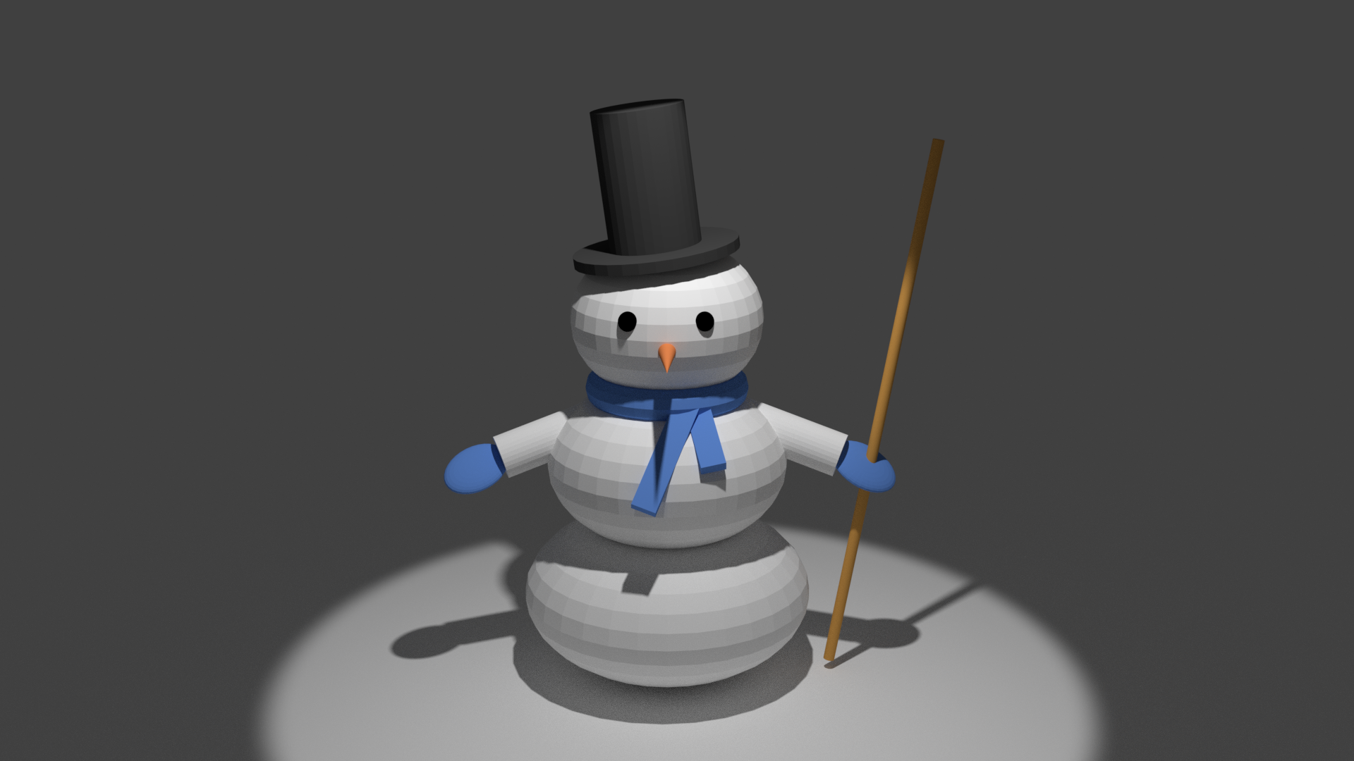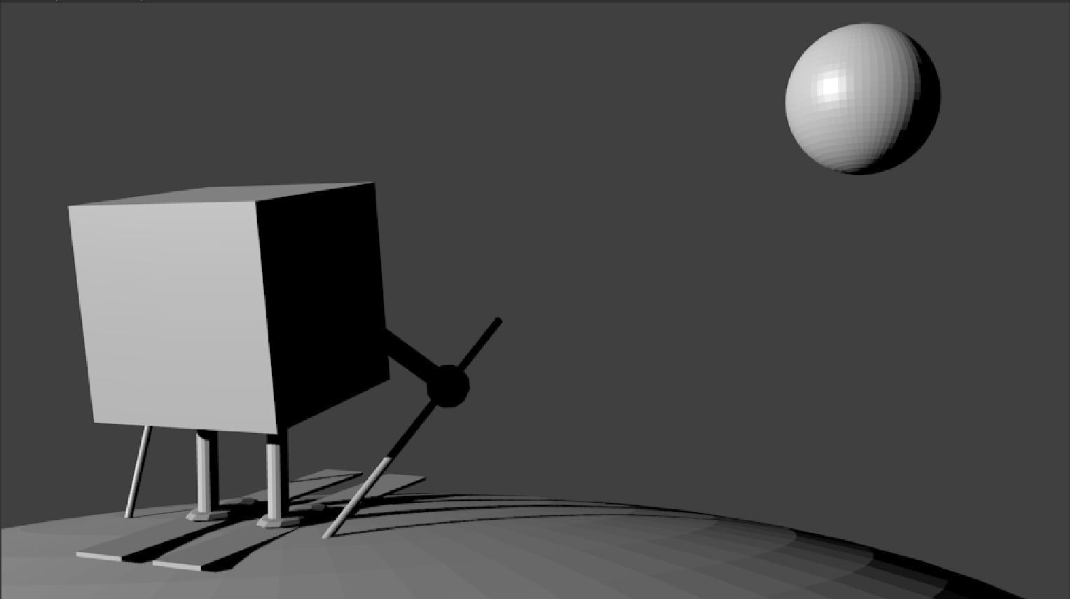 HOMEWORK: Create a scene out of primitive shapes. It can be anything from a landscape to a spaceship to a character. Just get comfortable with creating and positioning mesh objects. Here's an example: