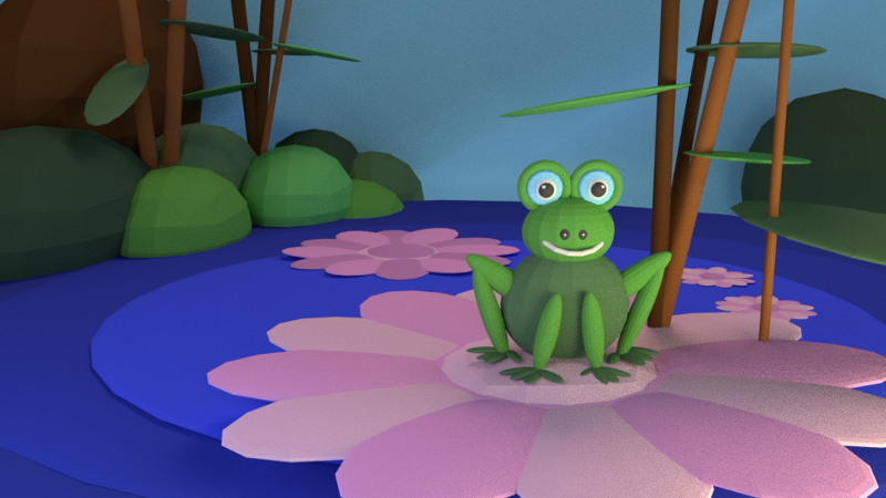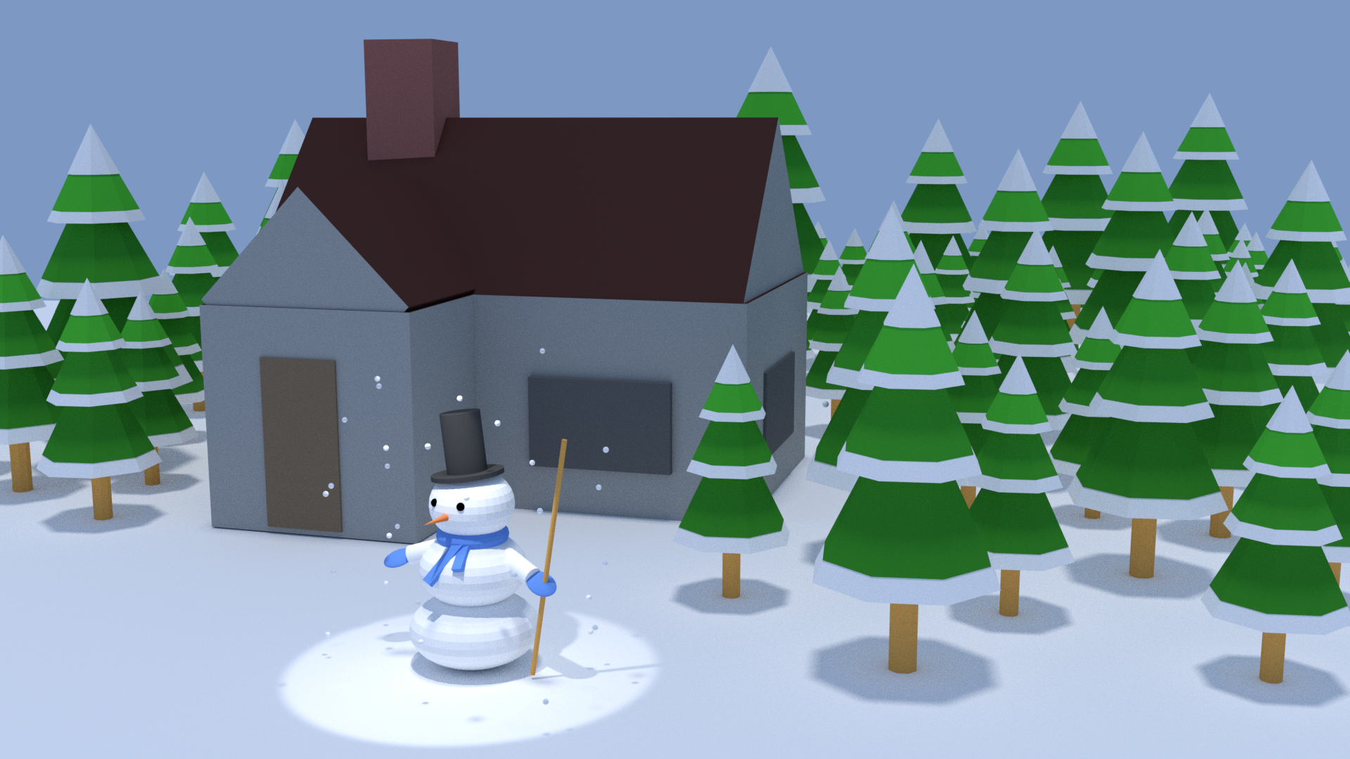 HOMEWORK: Create a scene out of primitive shapes. It can be anything from a landscape to a spaceship to a character. Just get comfortable with creating and positioning mesh objects. Here's an example: