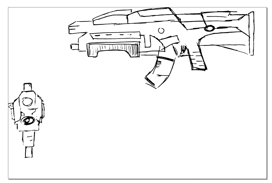 Quick update on the rifle, it all started with a terrible sketch (perhaps proof that you don't always need to have outstanding skills in 2d in order to be a happy 3d modeller :D )