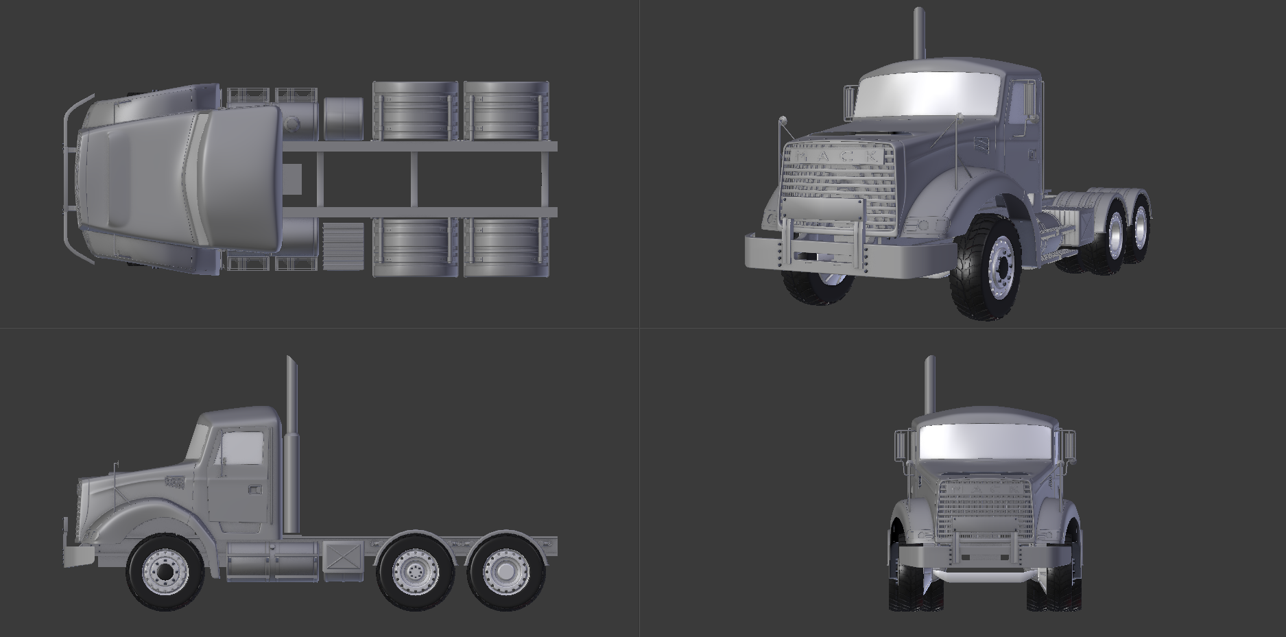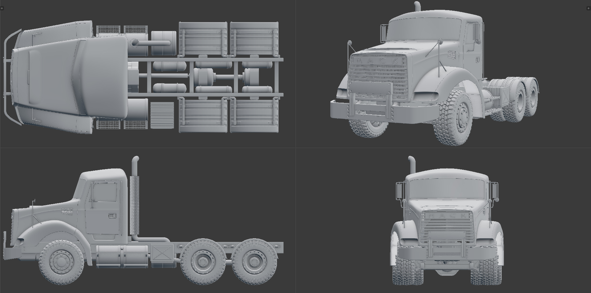 Update, tires are repolished, front axle as well. Added more components such as rear axles (very basic shapes, it won't be that visible), some tanks there and there, a noise encapsulation around the engine and the gearbox so I skip detailling the engine for the moment :D The exhaust pipe is also polished, with a detailled heatshield.
