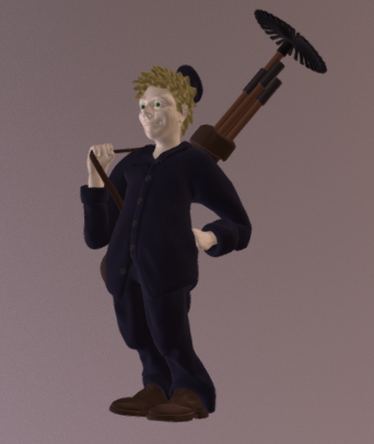 Named as Cuthbert, he is a chimney sweeper apprentice. Usually called as "Bert", "Hubert" or "Hugh" by his Master Sweep Floyd Griffiths. Sometimes the name turns in to form of just "Lad" or "Boy". It is not rare to hear the coughs roughed voice through the chimney pipe yelling "Go on, hurry, Cuthbert! Why'd you were given so long name anyways? Enough to think through with your small brain, laddy? C'mon Hugh. You think we got all day to sweep only this one chimney? Do you want something else for supper than just water? Better keep sweeping and sweep fast, or you'll stay like the little bastard you are for the rest of your short life." and so on. Even so the master sweep is tough slave driver, Cuthbert is not afraid of the man and secretly calls him with names when he's not hearing or around.