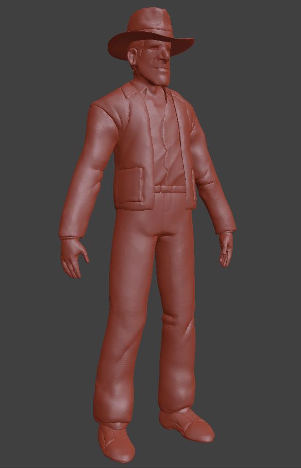 I've left Indy's gun and whip/bag out for now, I'll add it after the character retopology is done.