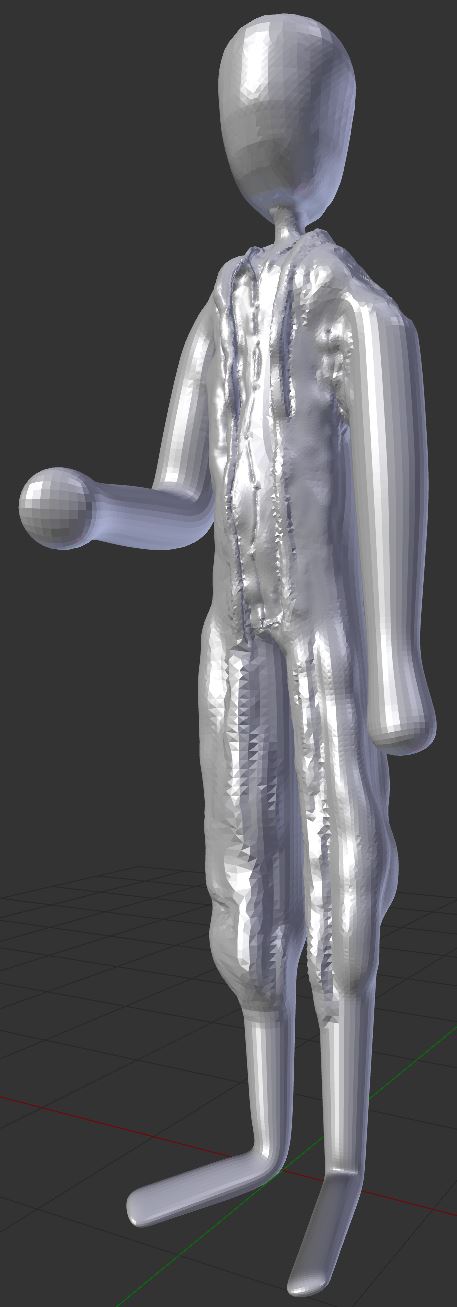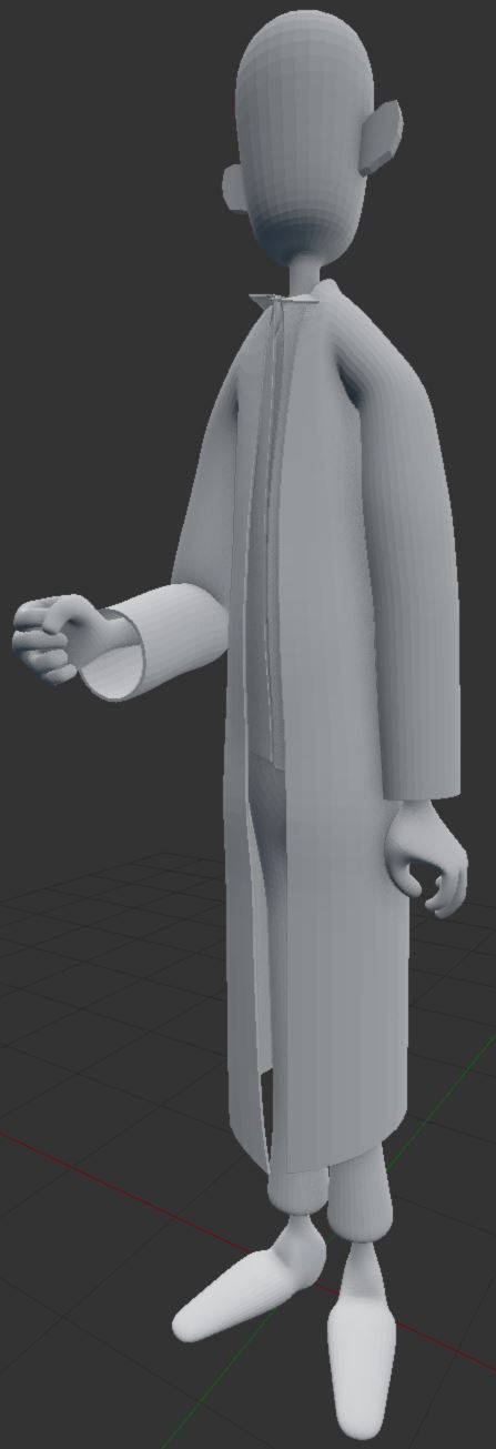 Here's my pre-sculpt, after taking the skinned mesh on the left and splitting it into a body shirt and robe.