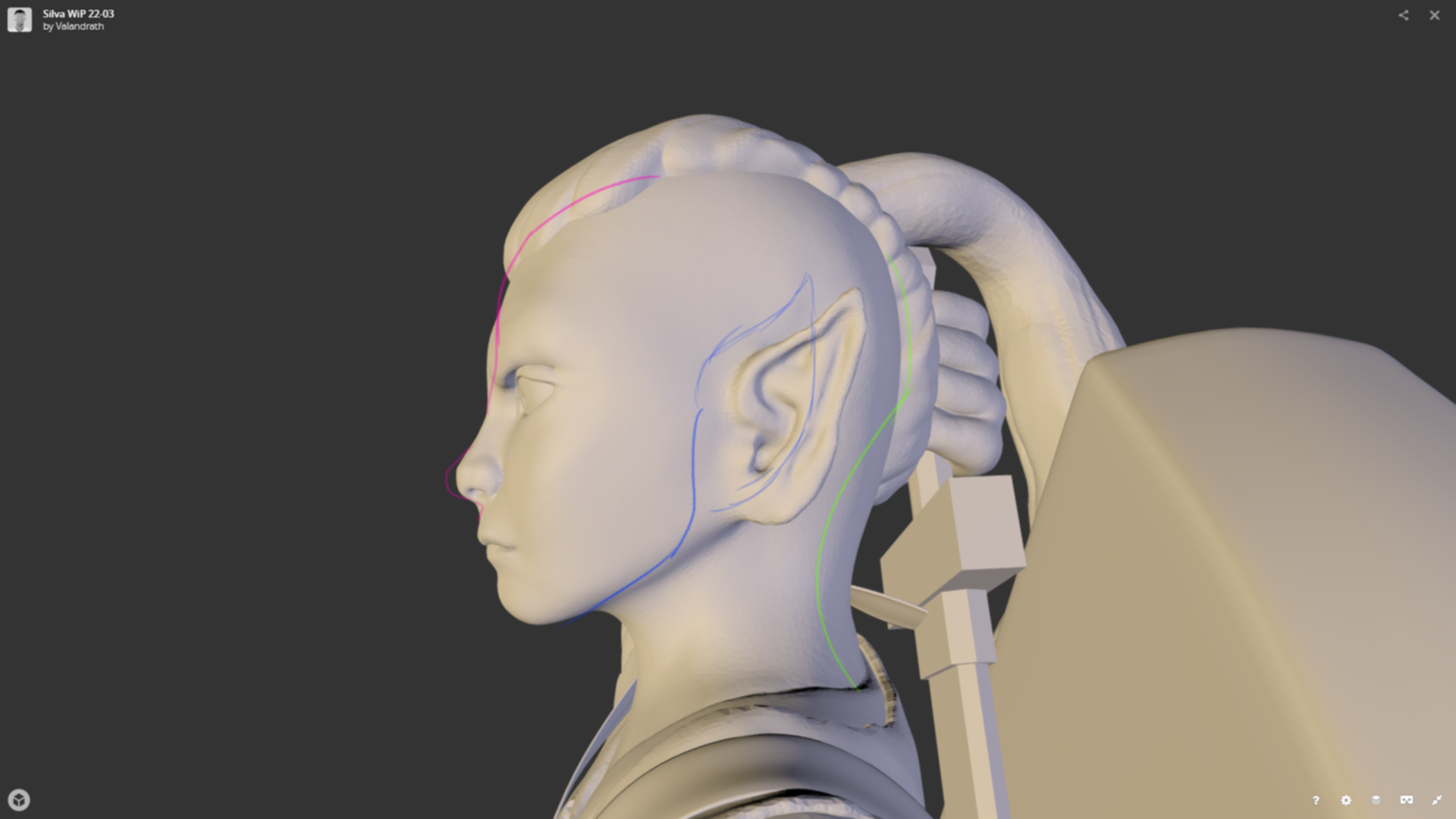 lhumungus! Seriously, this looks awesome. The camera angle adjustment, lovely detail additions, her face, and *that* hair. Also the little bit of facial paint for lips and eyes helps her feel so much more human compared to leaving everything grey.