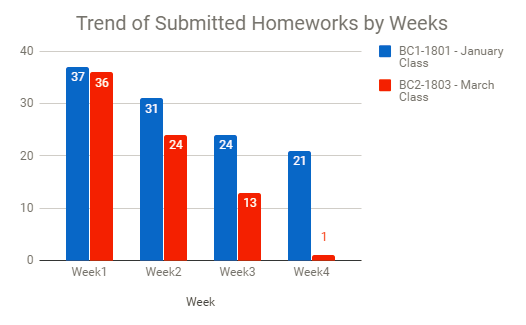 and as a Volunteer Assistant for documenting homework grades just thought that maybe it is worth the visualize the experiences of the first two classes.