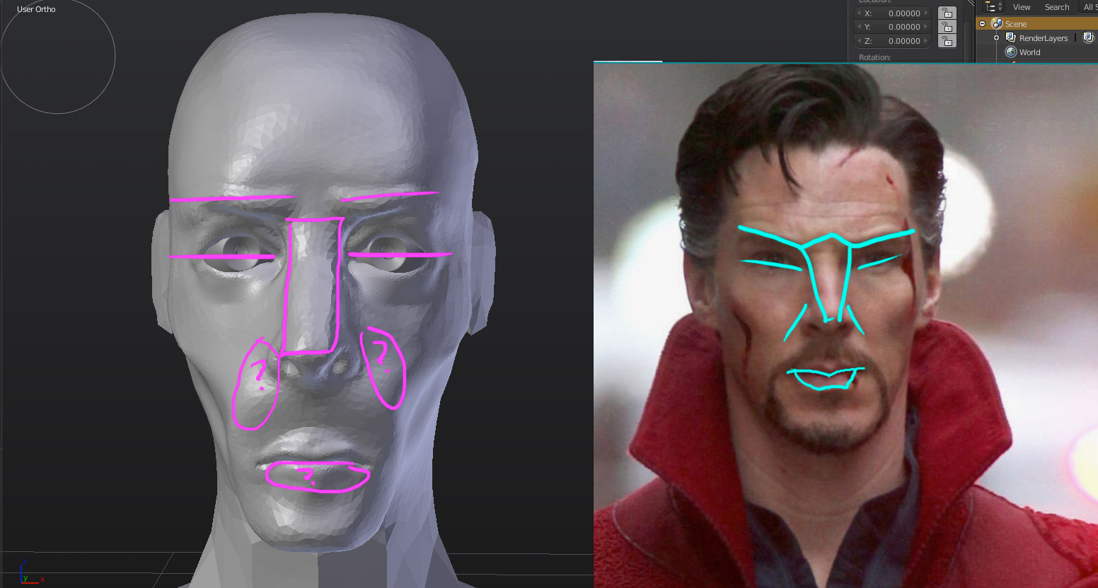 Also he's got distinct but short laugh lines straight down the sides of his nostrils, which is a feature missing from your sculpt. Also the lower lip is a distinct feature on Benedict that isn't formed with your current WIP.