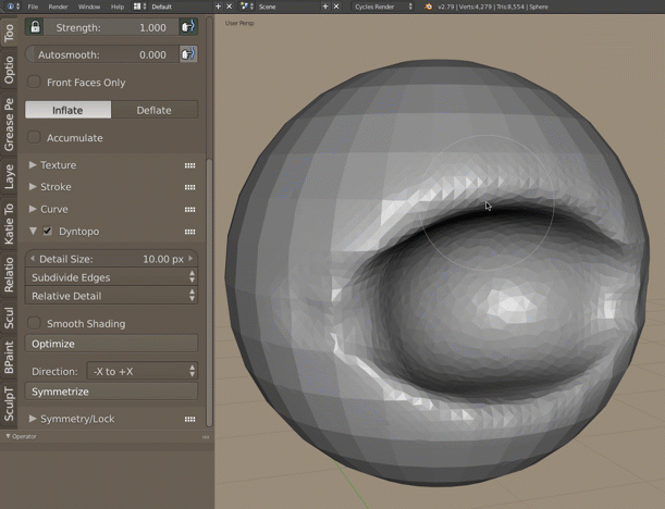 Hi Stanislav - Lampel is right, this is a common dyntopo sculpting issue that I run into and have explained in several videos but can't remember which one exactly. Here's a gif explaining the fix: