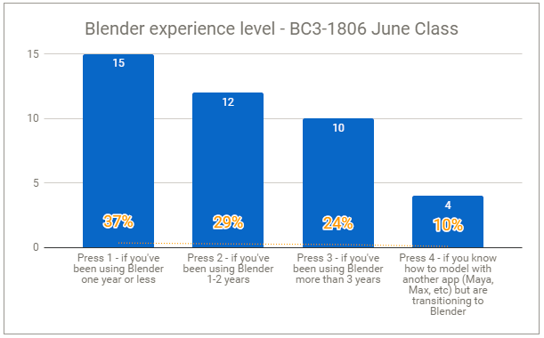 You might be interested that when you asked the Blender experience level how many users answered in total? Amazingly 41 feedbacks arrived in around 2 minutes!