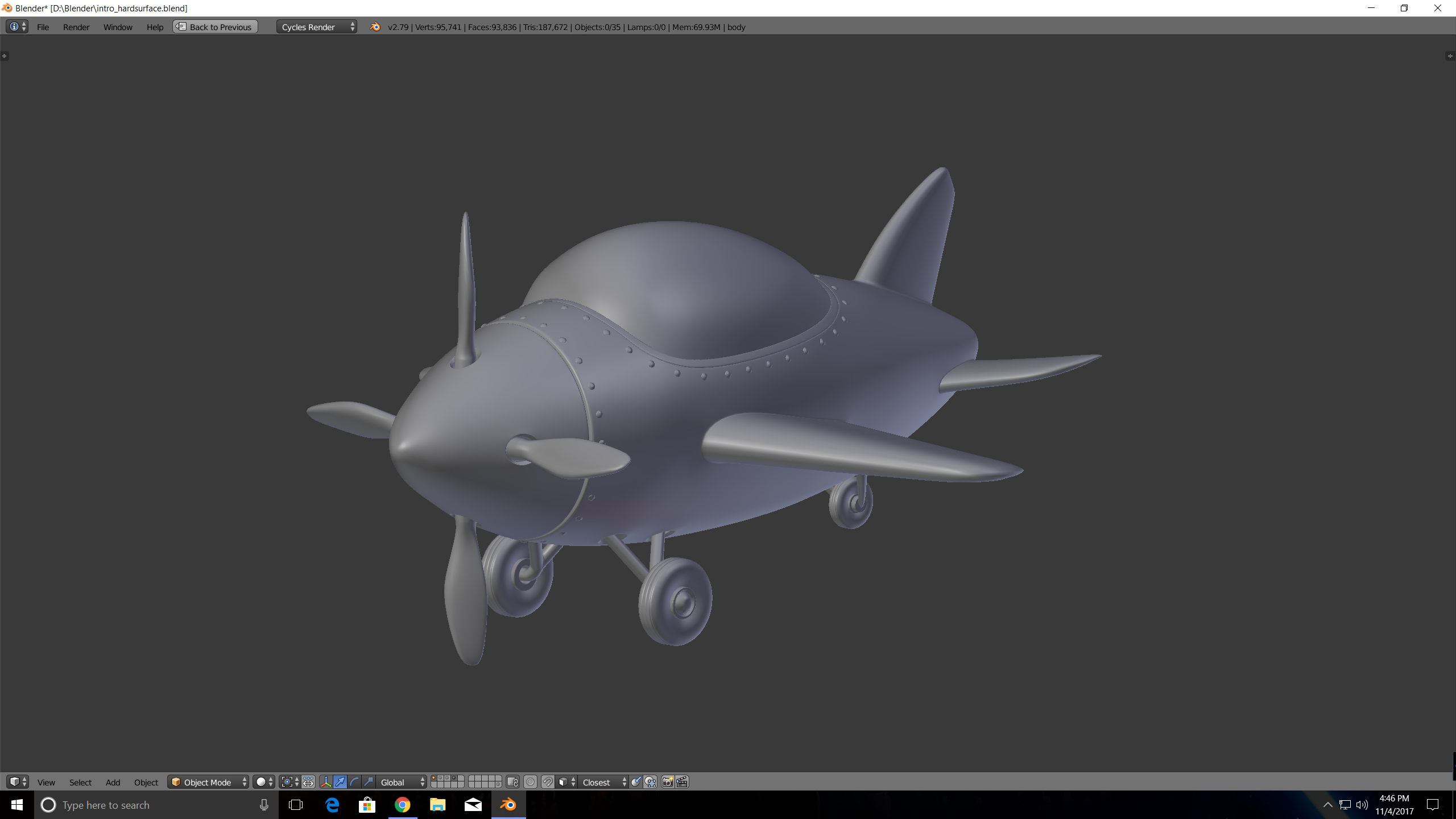 I didn't have time to do the primitives. I attempted the airplane though. I changed the two rods on the back tire to come out of the middle of the tire. Bad lighting too.