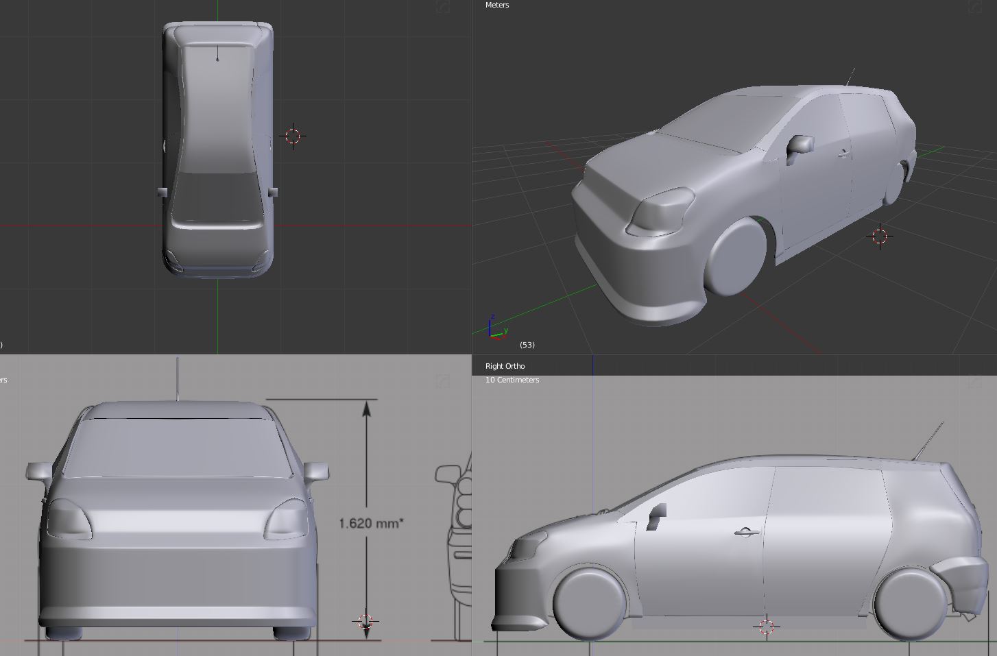 Goal of the Week: Build the exterior of your chosen vehicle based on blueprints. This will be good practice in strict adherence to orthographic front/side/back/top view modeling.