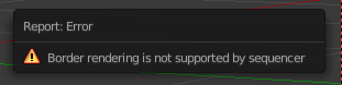 So then I switched to the 3D viewport, camera view and toggled to rendering mode, worked fine as well. However, I have this habit to limit the border (ctrl+b) to the camera, which I did unconsciously. Then I tried again to render (F12) and got this message:
