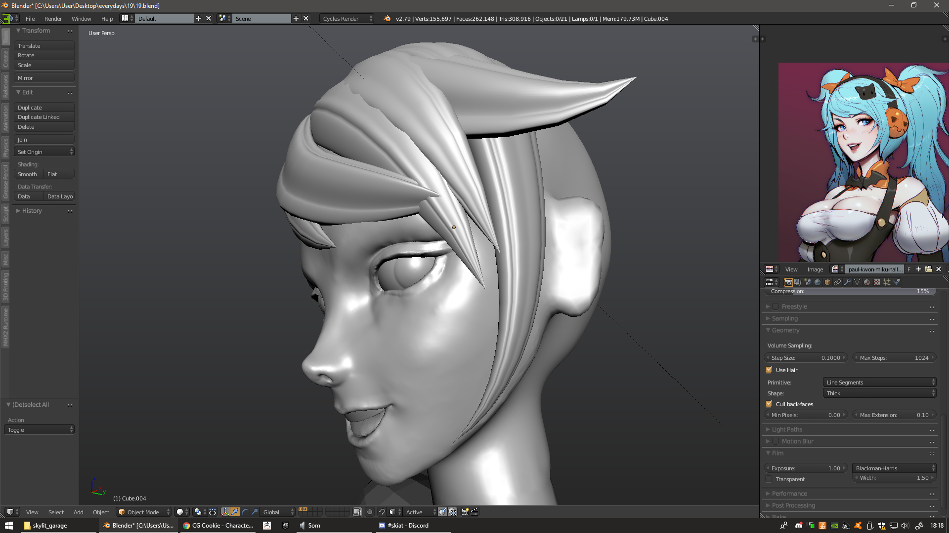ttabbyr Today was a really intense day, i only slept 3 hours because i got too excited messing with nodes following the space vfx course and i had school all day plus it was my birthday so i got really really tired and i was more inclined on not doing anything today for the character, but andrew price's words keep coming into my mind: "I will just draw one line, i can draw one line" that's what i decided to do and hey i spent 45 minutes sculpting, i must go to bed now though, i can not sleep 3 hours again haha.