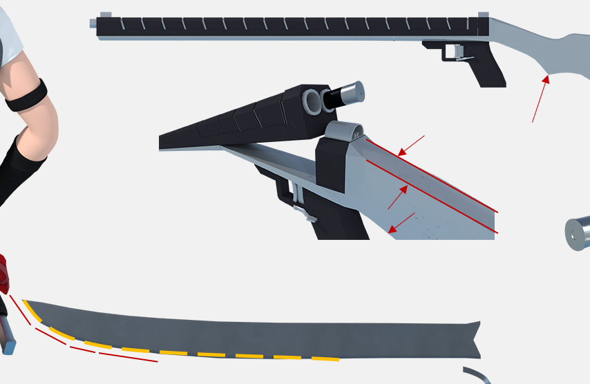 Also, but maybe you're working on it as well, the weapons are lacking details in comparison to the character, and could have smoother edges so it better matches the overall style/mood of your character.