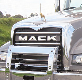 My original idea was to combine the most recent Mack trucks (the "Granite" model actually) with some older version to get this vintage truck. I think the current grid model and the brand font, as you show on your post, is too much modern. The old ones look like this: