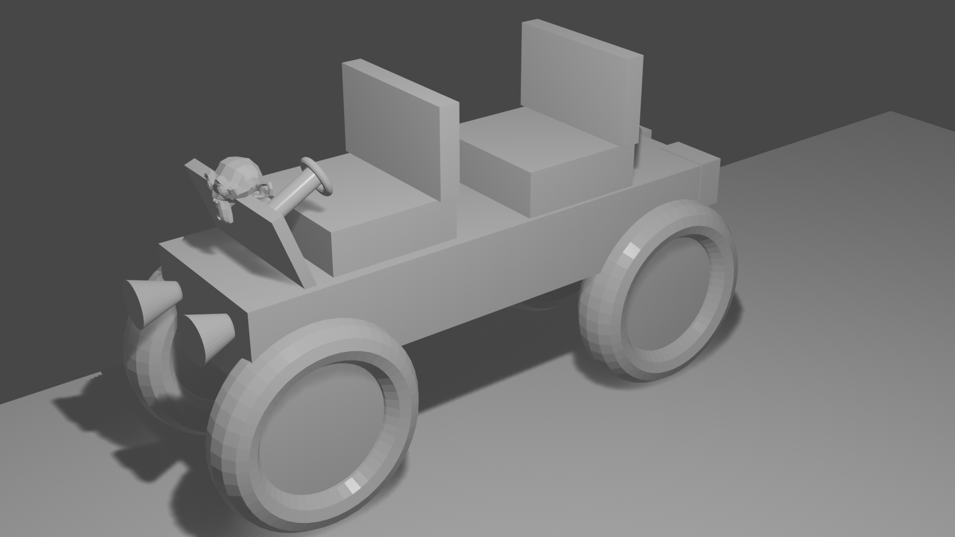 Here's my submission for Homework 1 . It is a model of Jeep or Truck made of just primitives. I made it using Blender 2.8. I've rendered an image of it .