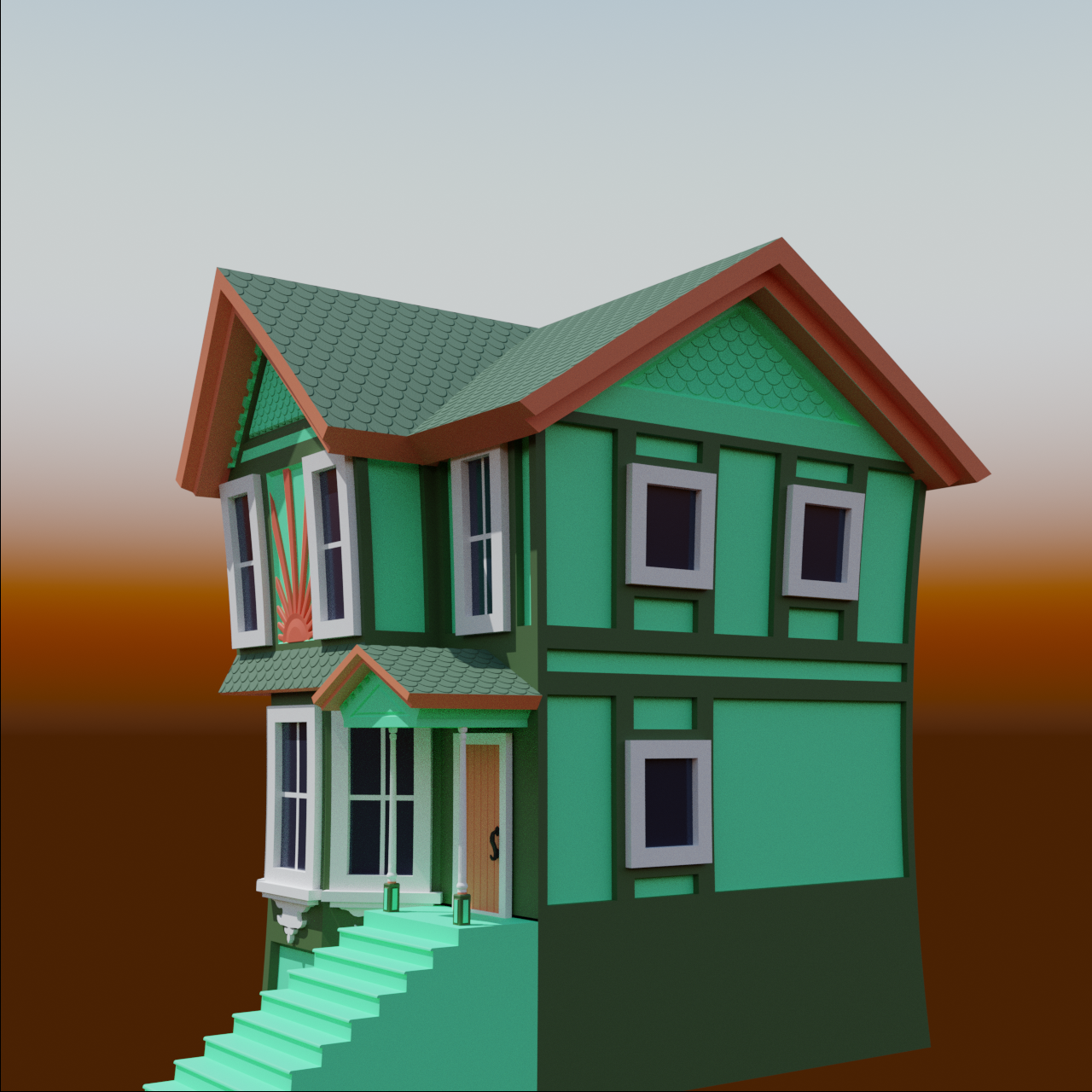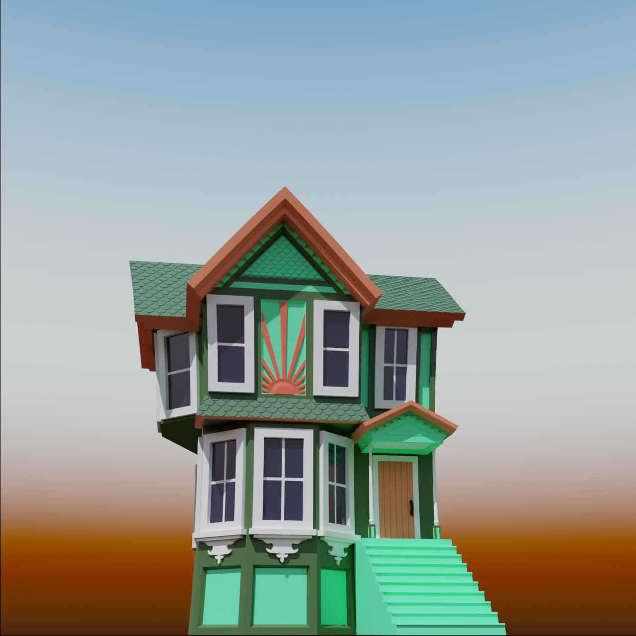 Stylized Victorian, like the kind you see in Alameda or Vallejo.
