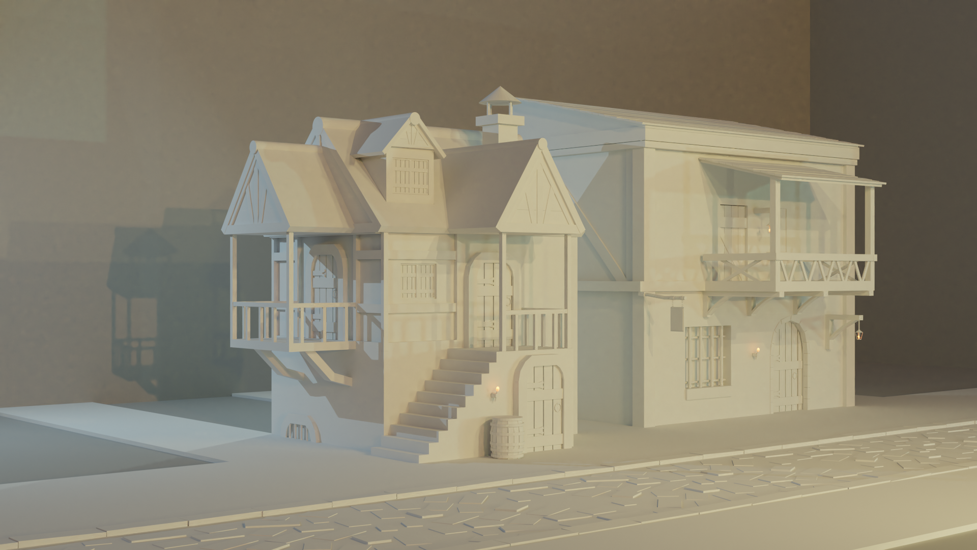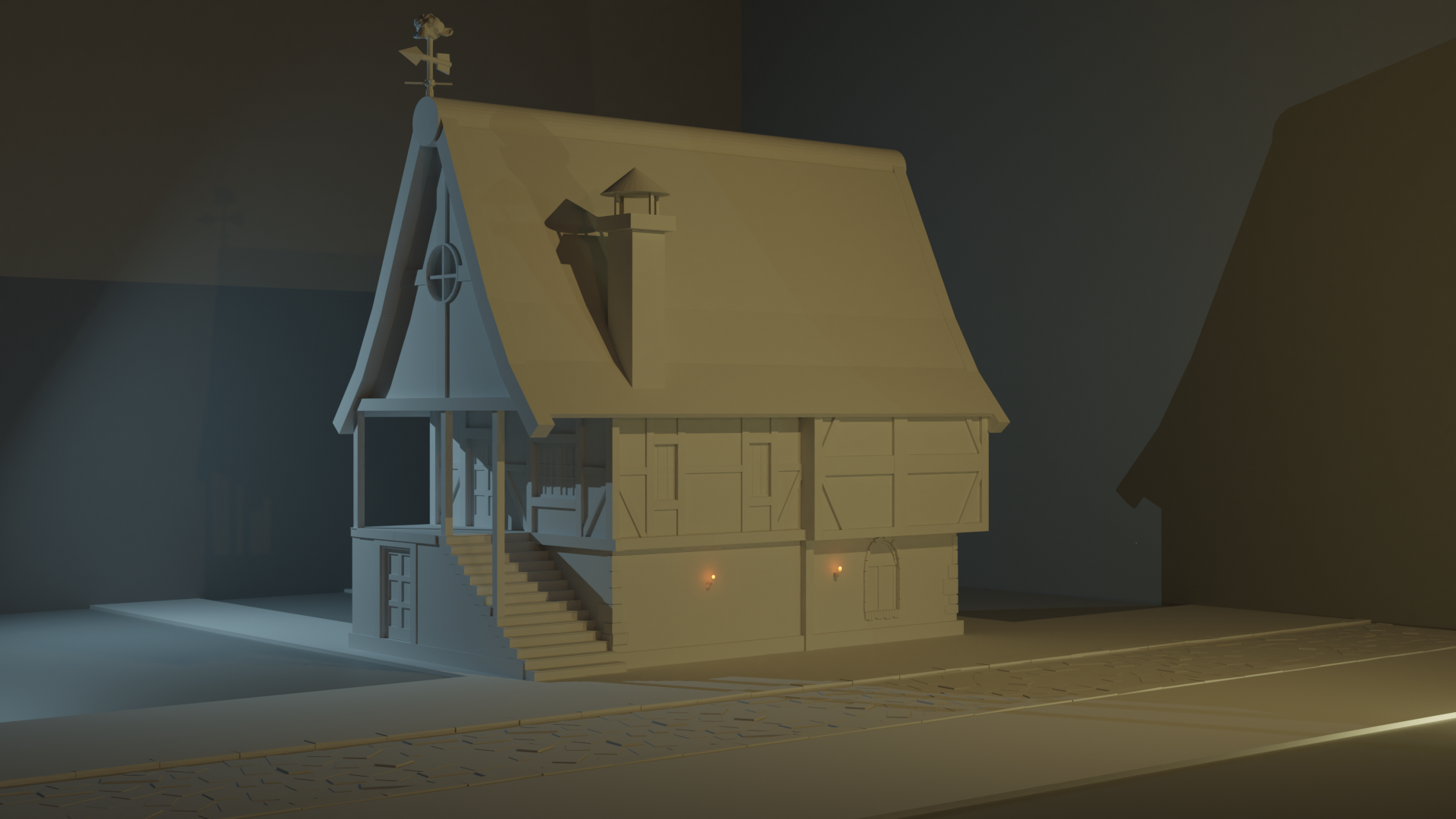 So here's my third - and presumably last - medieval house for this render. Certainly better than the second house. This is what I primarily ̶s̶t̶o̶l̶e̶ ̶f̶r̶o̶m̶ was inspired by and made a few changes.