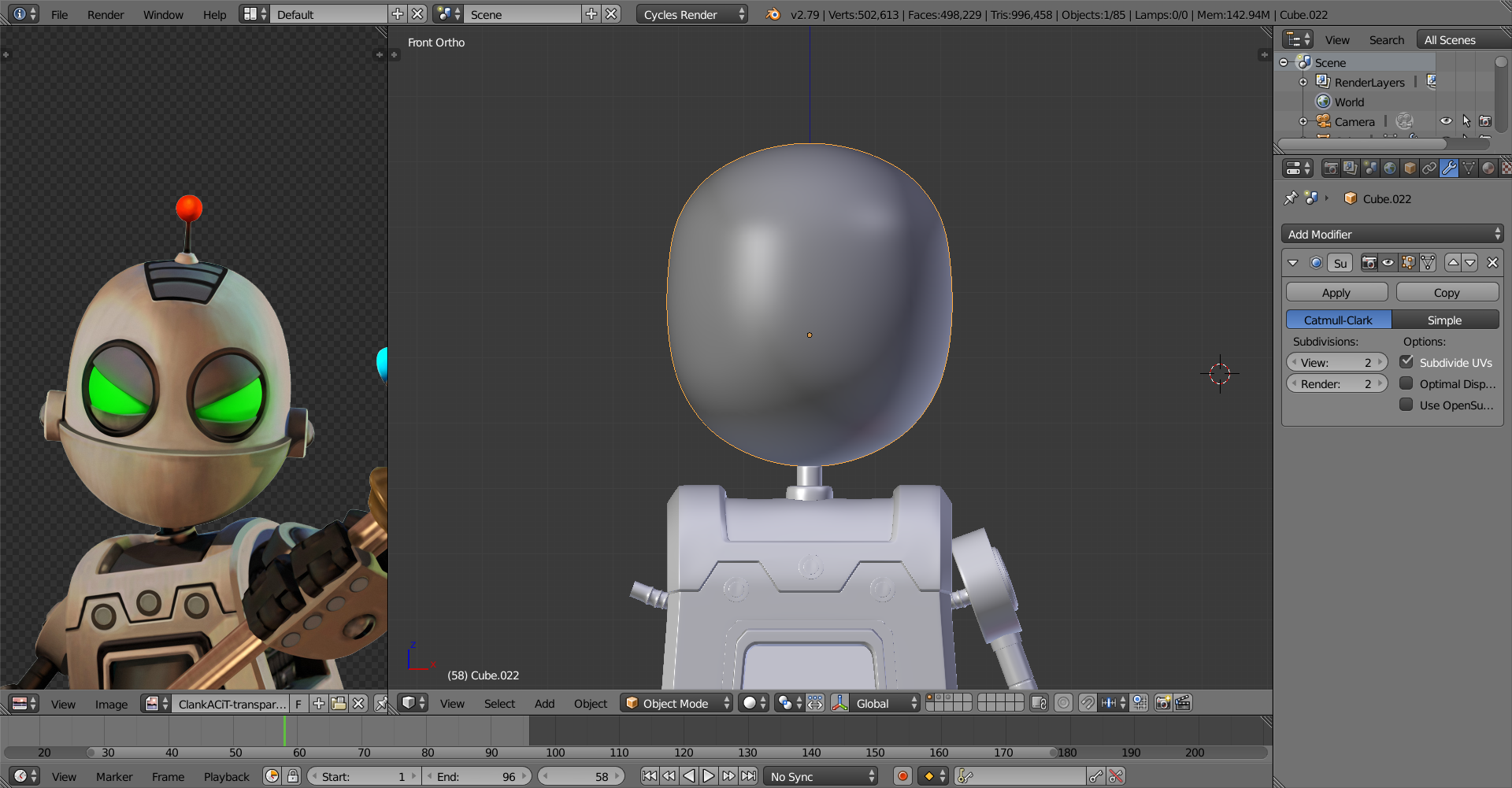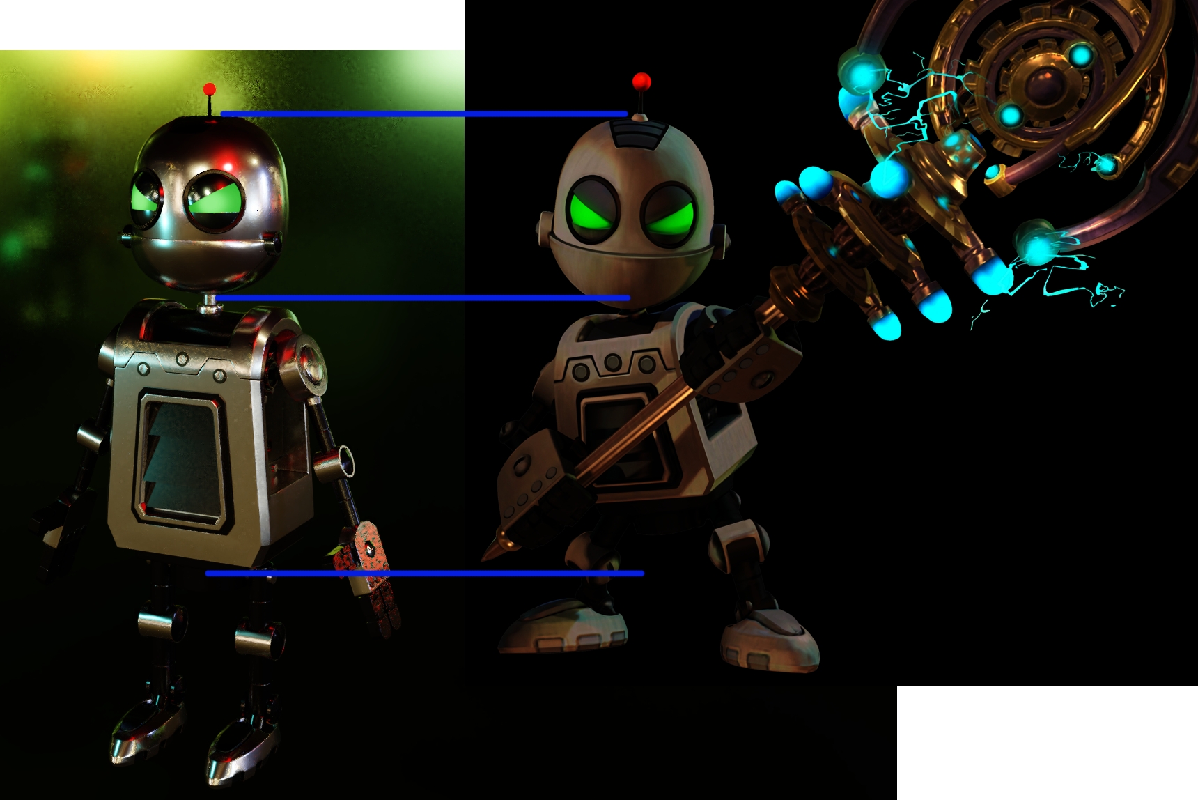 Well that's Clank finished. Mostly. The head was definitely much more difficult then I suspected and even now something still feels a bit... off. If any of you could point it out (or tell me it's all in my head) I'd appreciate it very much. Here's a page with a lot of references. One thing I should point out though is that whilst the materials are based on the PS4 version I modeled him mostly based on the PS2 and PS3 versions. I have also noticed that one of his eyelids are a bit askew so that's something I need to fix at least.