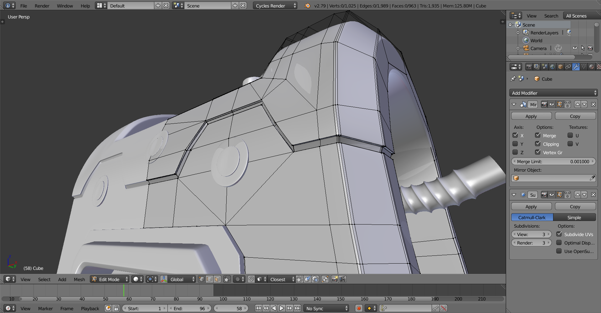 aaaltuvem The knife tool mostly. Once I cut out the shape I wanted I extruded inwards slightly and then scaled the top part a tad. Fair warning the topology is very garish, but when I'm done for the day I'll post a wireframe. And thanks! Forgot to mention that.