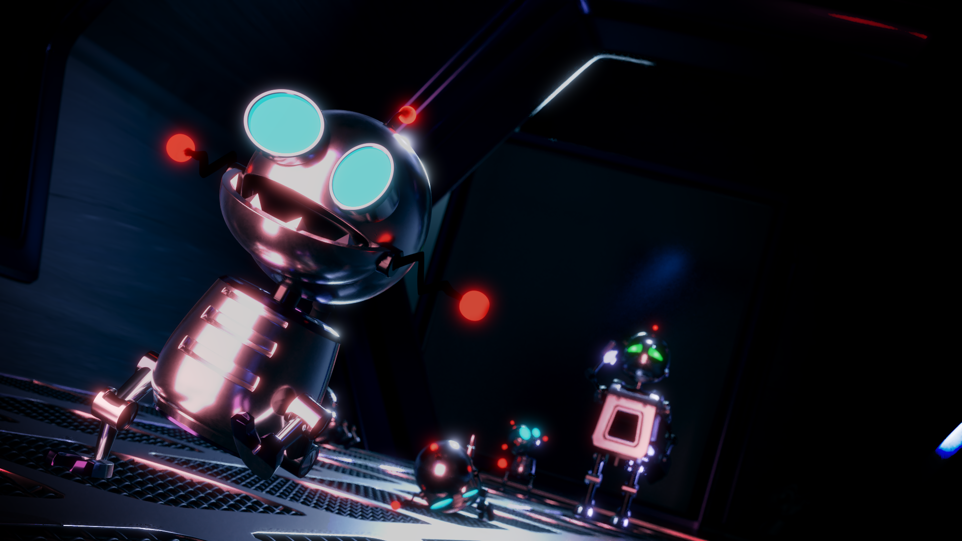 UPDATE: Based on feedback I rendered a slightly altered version including decreased bloom, subtle motion blur and I also tilted Clank's head for a bit of extra expression.