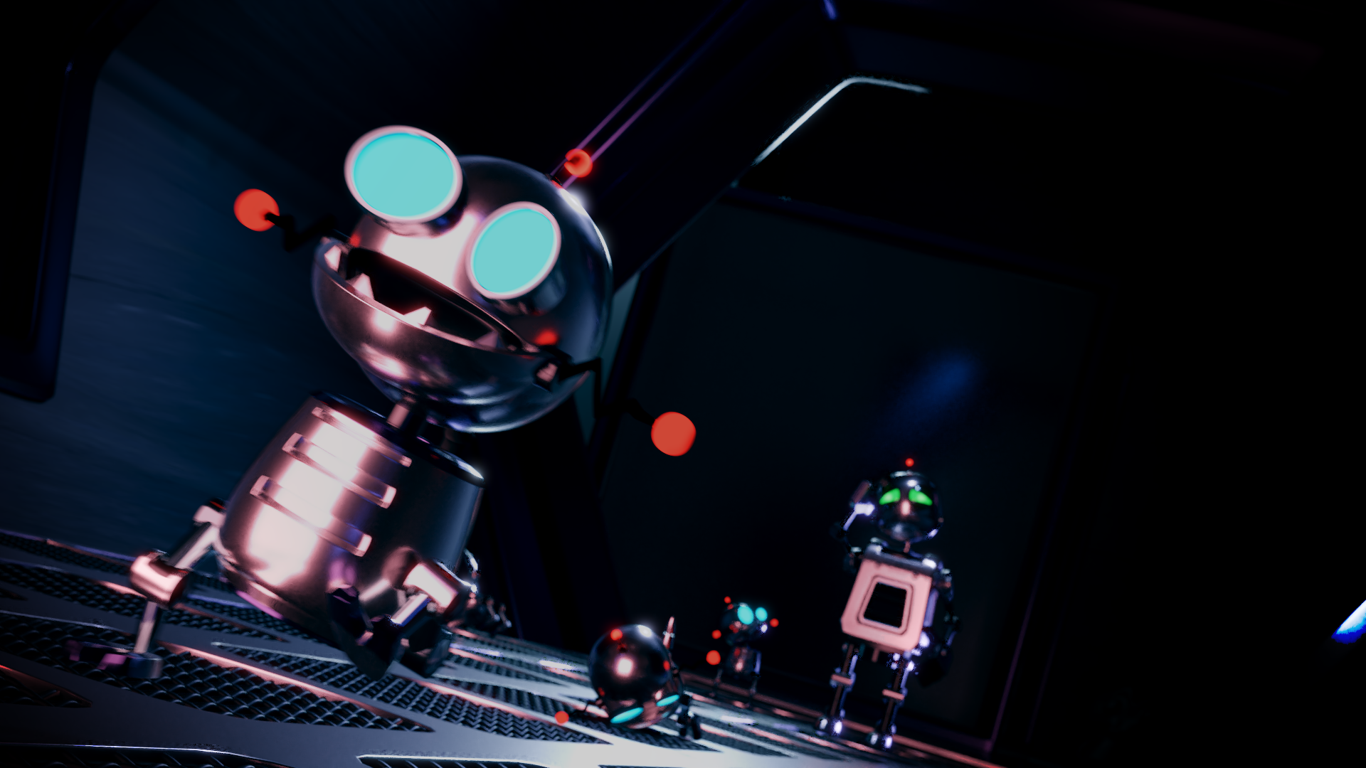 Maybe I should've added motion blur to the closest Gadgebot? They're not exactly fast so it felt a little overkill. Also do not underestimate the compositor, it can do wonders to your render. Seriously. Sorry for taking so long @theluthier and