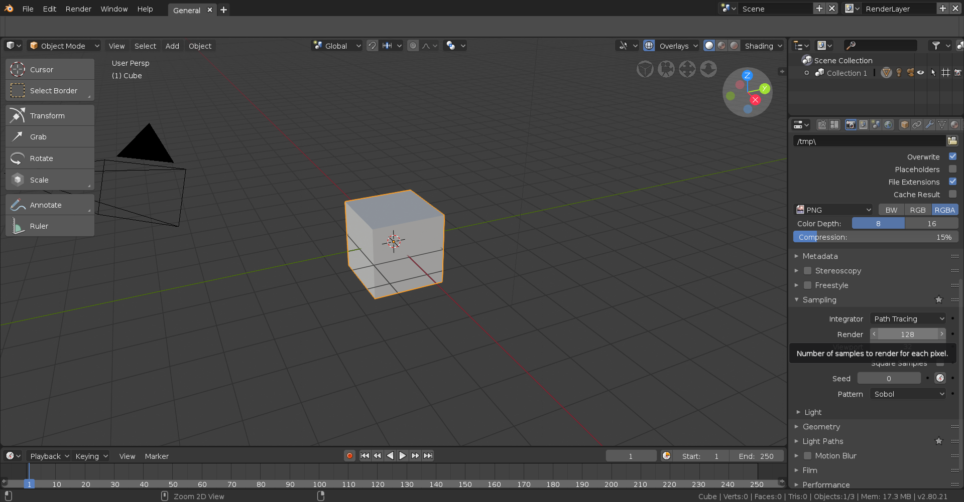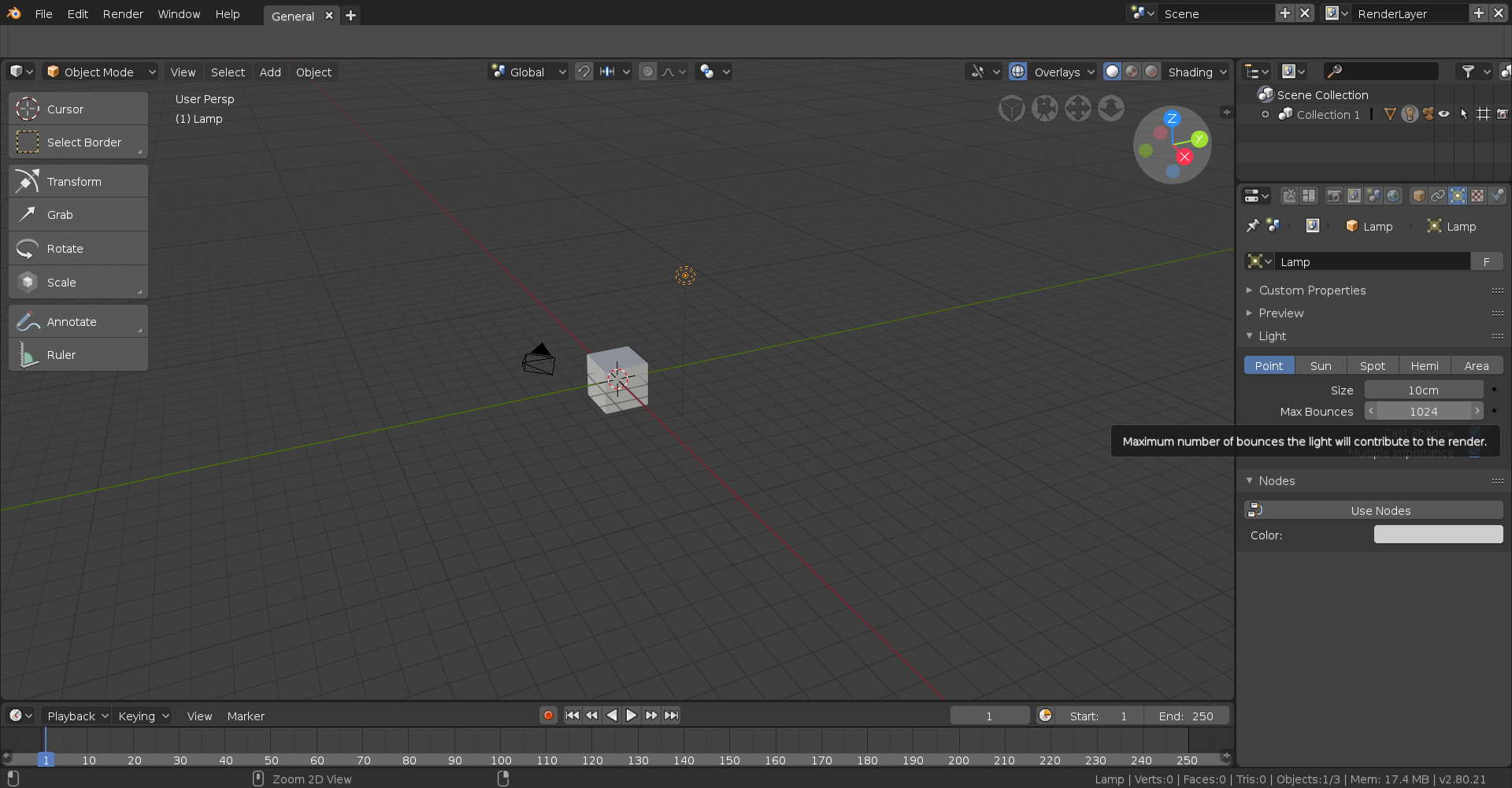 Probably the easiest to understand and most common method of getting rid of noise, otherwise known as "fireflies" is but simple increasing the samples. Depending on the complexity of your scene to what other options you have turned on or off you will want this anywhere between 200 and 2,500. To adjust this setting, it can be found under the Performance dropdown in the Render panel.