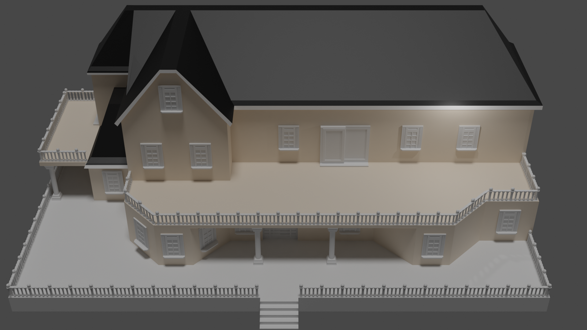 The balcony looks much better with a fence, nicely done. The pan and phone cord look good too. Nice job on your first real modeling challenge! It al gets easier from here 😊