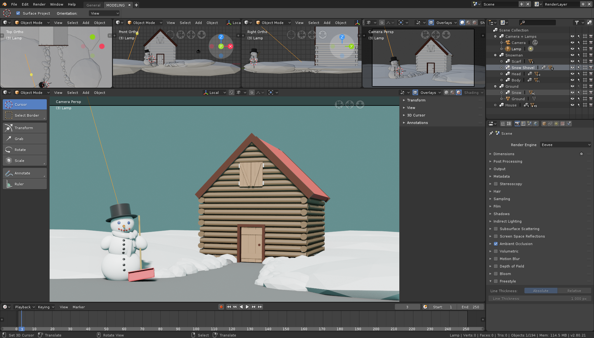 Week 1-part2 - Homework submission - Modeling with primitives (2) - Winter Scene: ( Page 2 -> Post 6 )
