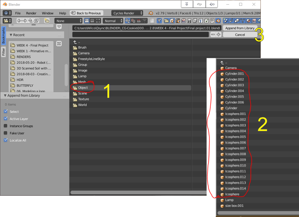 yyukinoh1989 You can't merge objects while sculpting. In the beginning I opened Blender 2.79b. In blender delete everything in the scene. Then I hit Shift-F1 to open the Append dialog window.