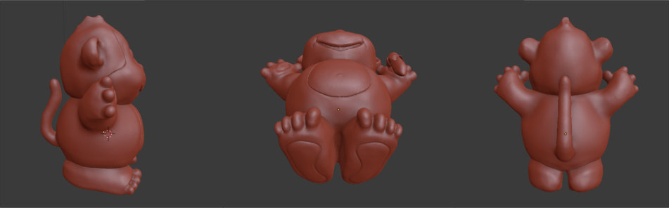 csehz Now you're thinking with proportions! Good work! The sketchfab model looks a little lumpy in places. Try turning down the strength on the smooth brush to help buffer those lumps out. Maybe the tummy is a little large; it looks like it's the monkey is 2 heads tall total, so the tummy would be roughly 2/3 of a head and the feet are the last 1/3. If you could flatten out the bottom of the feet more, I think that would help to take some height off.