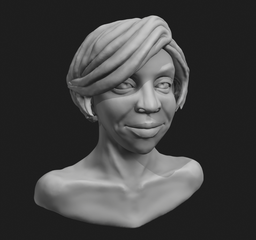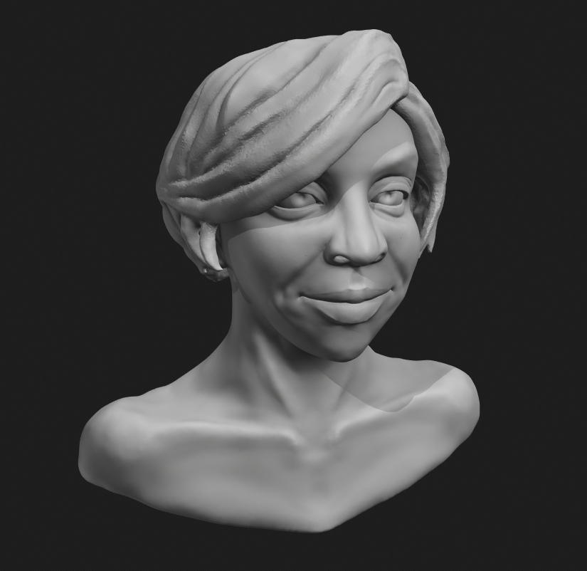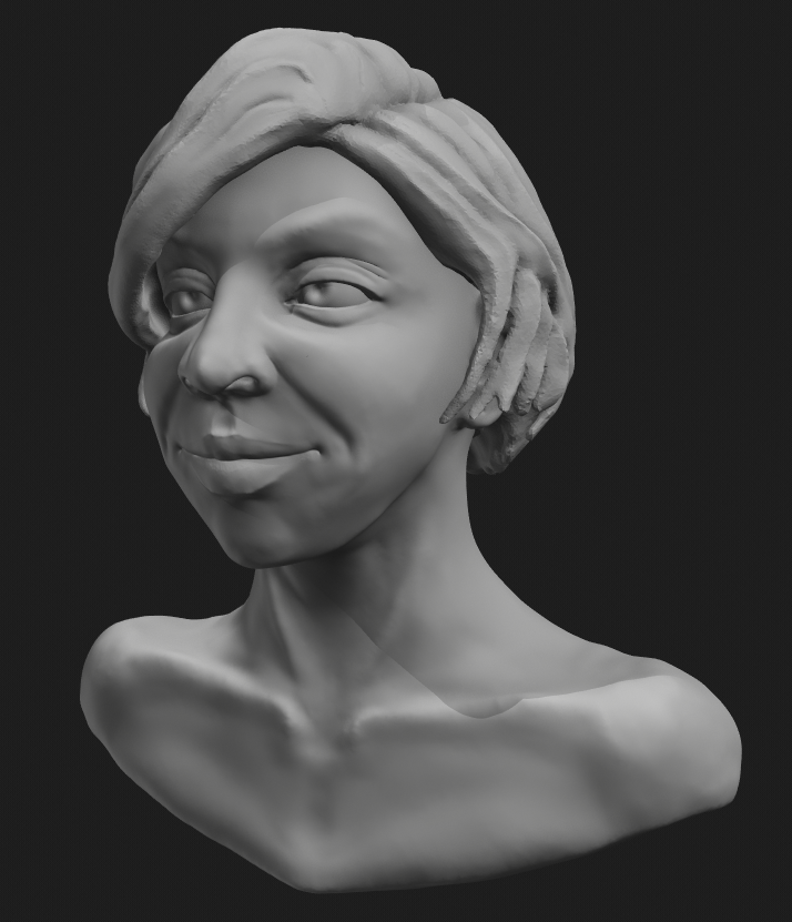 Tomorrow I'll sculpt some hair, and maybe do another polish pass - I think I want to tighten up the "bottom" of the bust especially - and that should be about it.Â