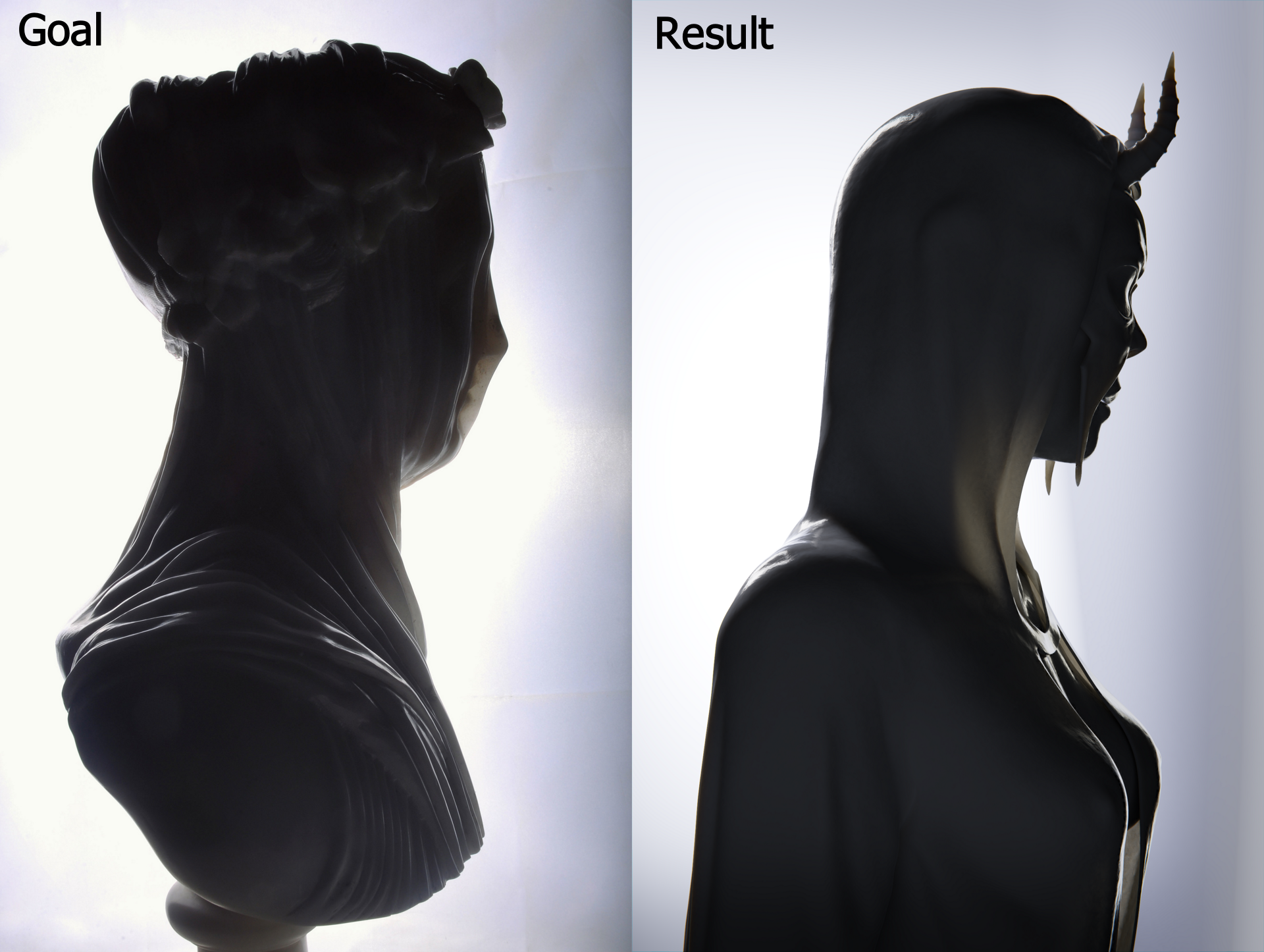nekronavt Very close! I think the goal picture has a more yellowish / orangey light on top, your rimlight looks nice. Great job! 😬