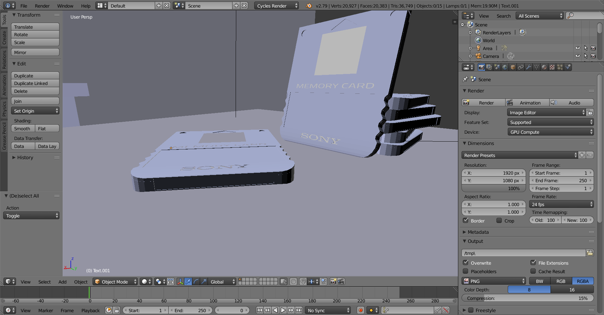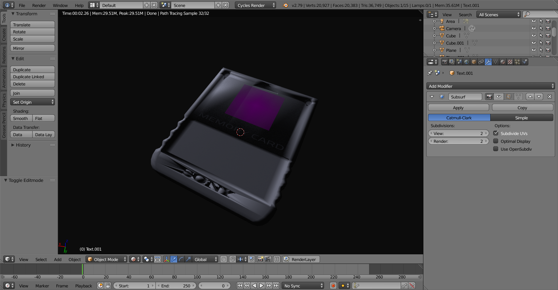 Whilst not finished here's my Sony Memory Card so far, a "remake" of my first non-tutorial based render nearly 7 months old (jeez, time flies). Was gonna do the displacement map today but felt I'd rather spend my time either working on my friend's project or the pumpkin contest, so I'll be doing that and hopefully setting up the scene throughout next week. Probably should have done some more impressive lighting but to be honest it was done at the eleventh hour just so I'm not late.