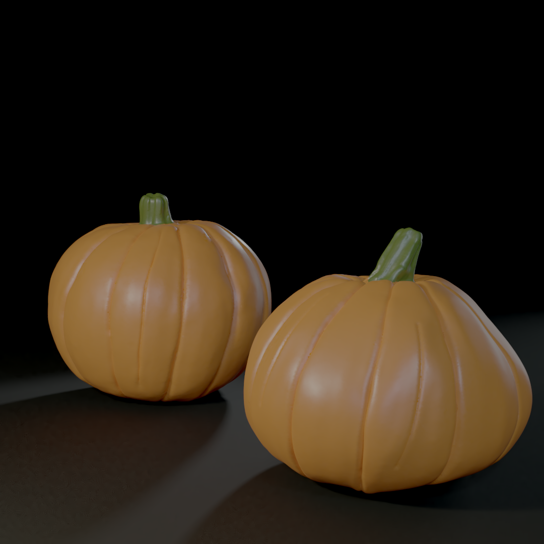 For the pumpkins, could use more surface texture, like these pumpkins. It's too smooth over the flat surfaces. Otherwise, it's a good start.