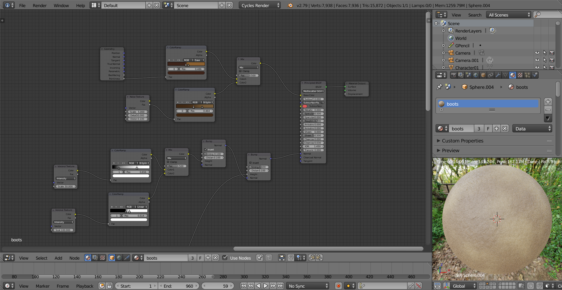 This was my first time messing with curves as a modelling tool, hence why they don't look as good as they could. Still, was a fun first attempt. I get the feeling I need to make the voronoi texture smaller on the main part of the boot, it's looking rather large as is.