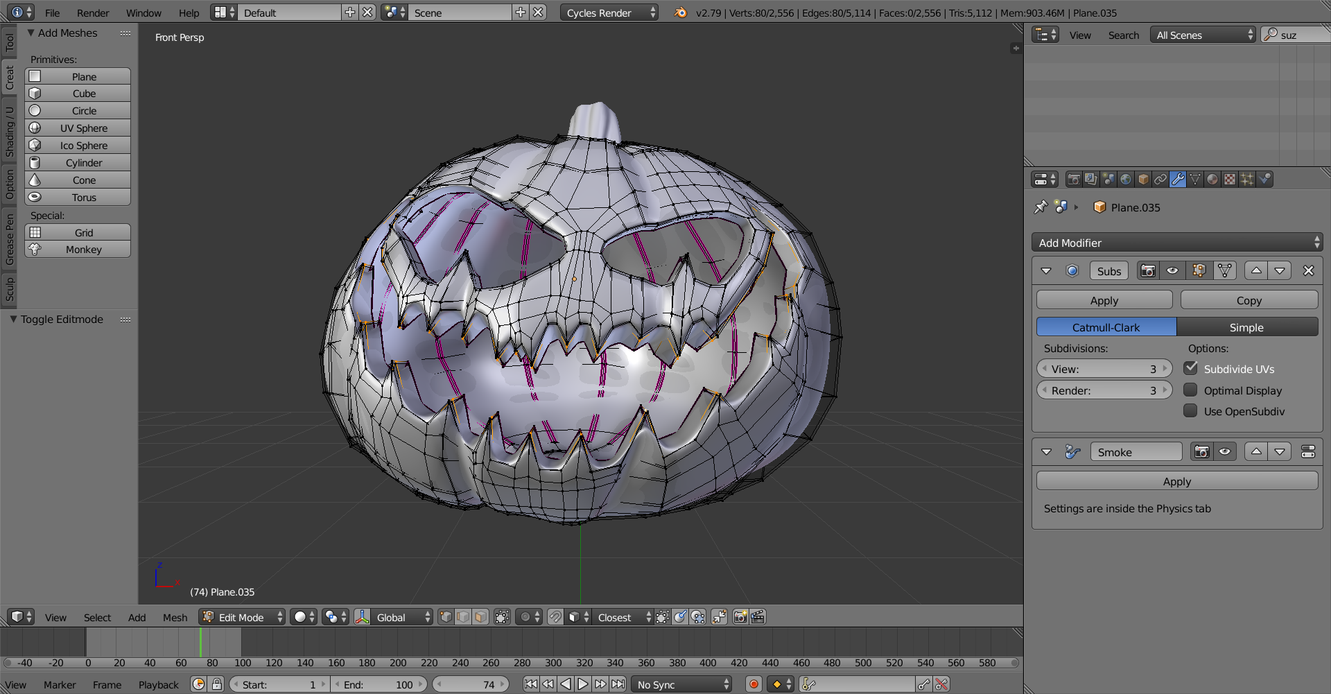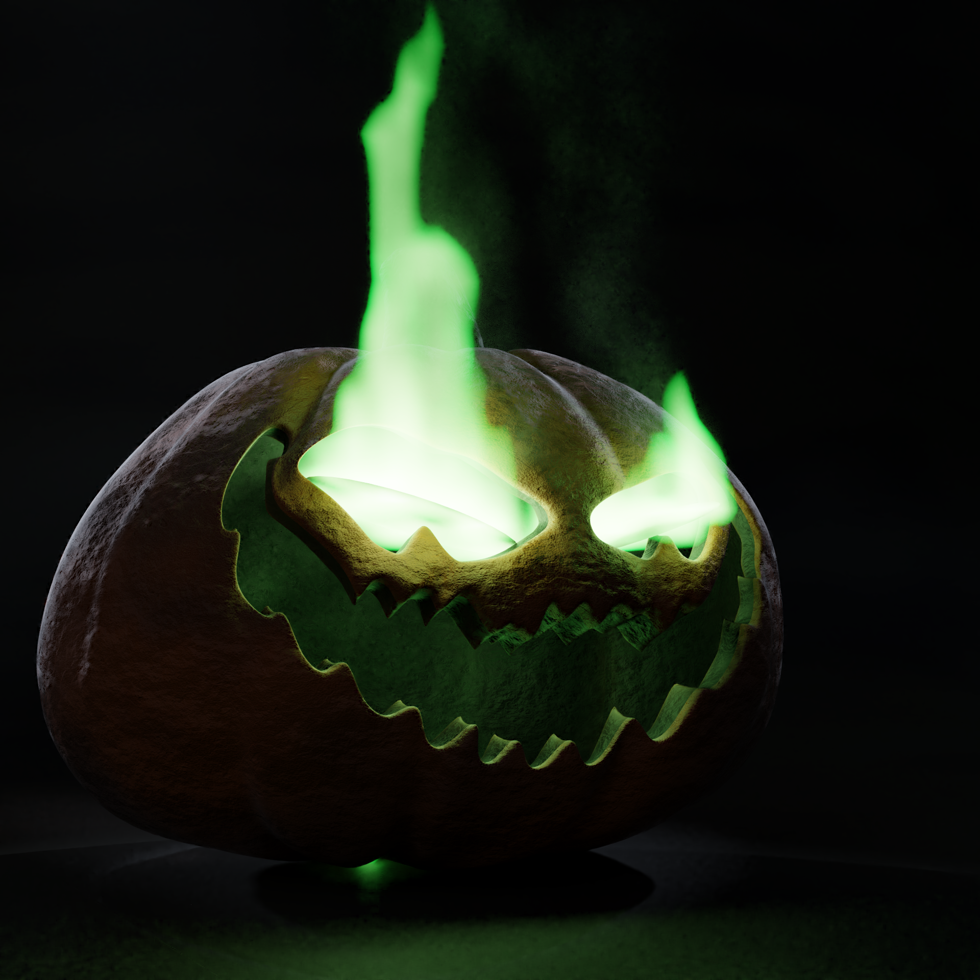This is what I have in mind for the pumpkin, still got some tweaking with the fire and smoke to do, the emission objects are still there, but I think I'm on the right track: