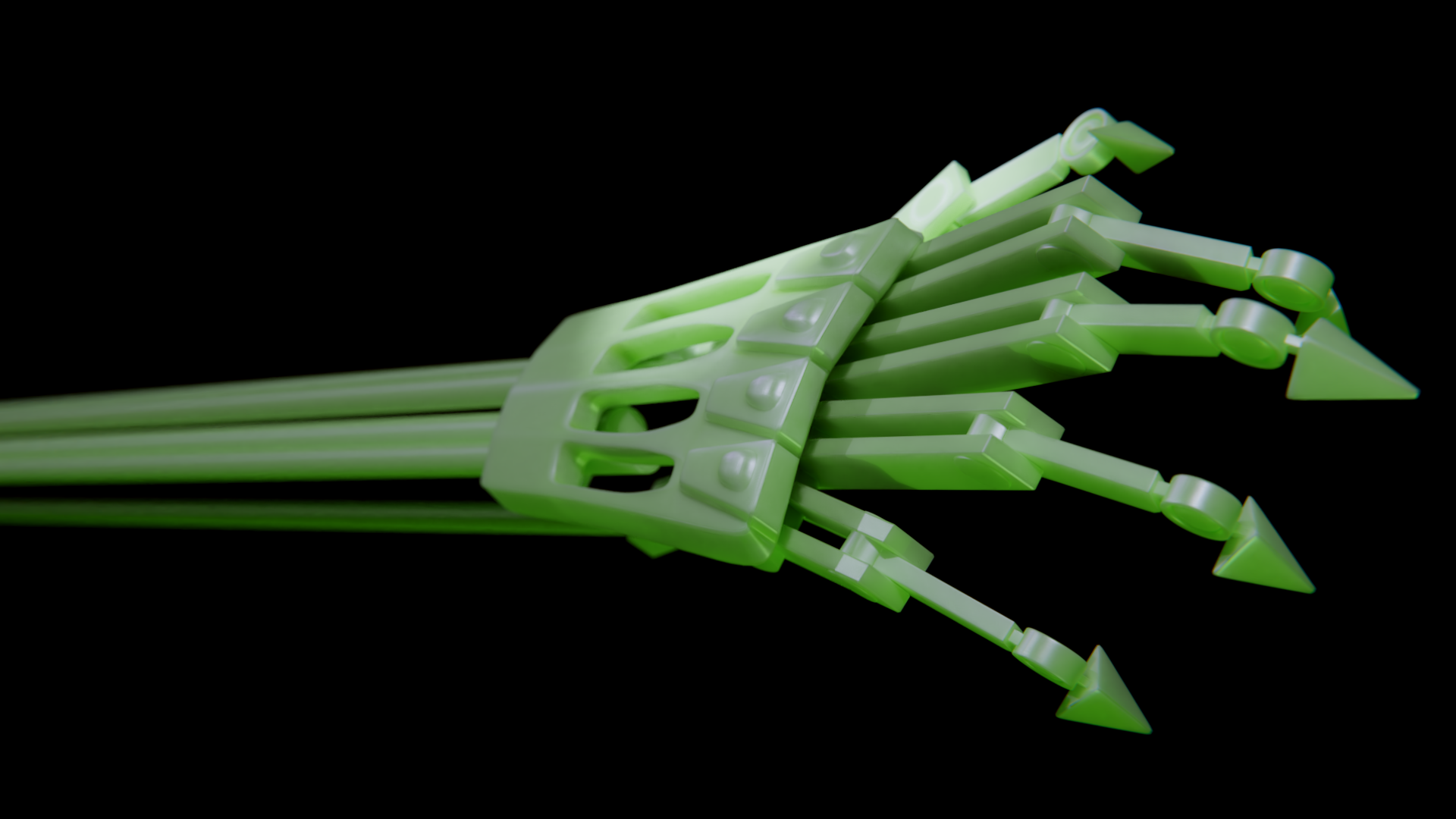 Yeah I don't particularly think a SSS-laden material such as jade really suits a robotic arm but quite frank;y I hadn't a model even remotely similar. The biggest thing I can criticize is the weaker DoF, it's not something I'm particularly experienced with so I did the best with the knowledge I had. Also trying to do the light green tint underneath wasn't happening, maybe by cranking up the SSS? Also something I'm not experienced with.