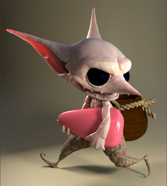 That aside, I really like the effort I'm seeing in your render! Especially the subsurface skin material. SSS is a tricky beast and it's looking quite good here. The pants and rope texture appear a bit random to me - can't tell what they are exactly. And the bag still feels like a WIP but the lighting good as well. It's a B from me based on completion and quality.