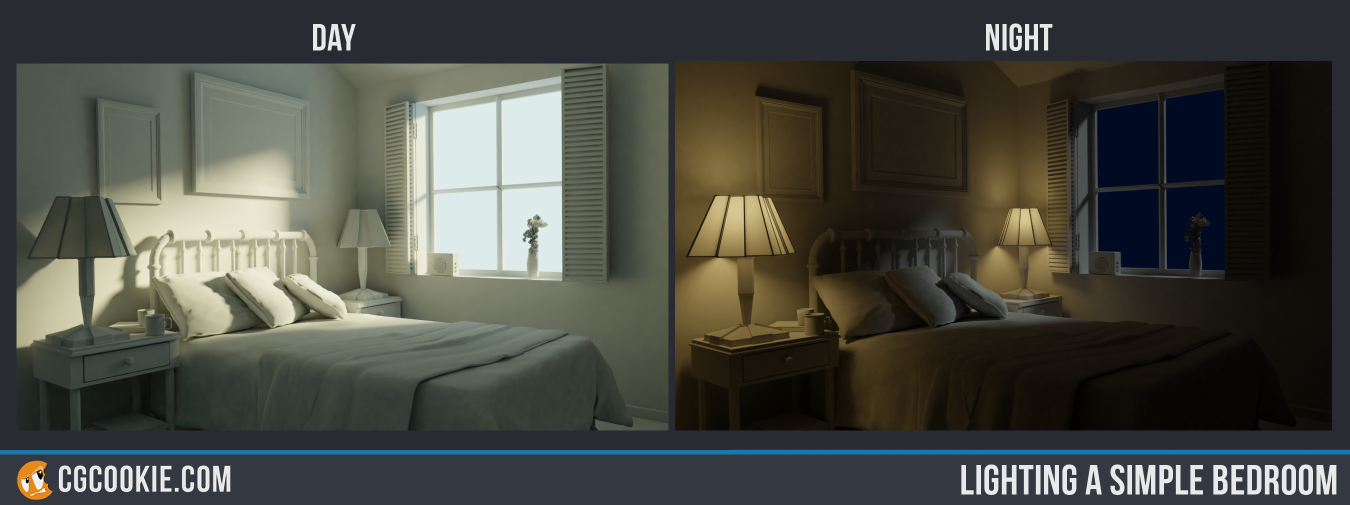 Nice day scene. Nice touch of orange in the lighting. Maybe a touch more blue in the background, but that's a nitpicky thing. The night scene is nice, but a bit black on the right side of the image. Maybe an adjustment to the lights is needed. The lamps look good; nice warm orange. Good work.
