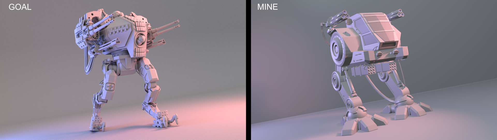 Your light match is really close to the source render! Fantastic choice of model. I've only got a few notes: