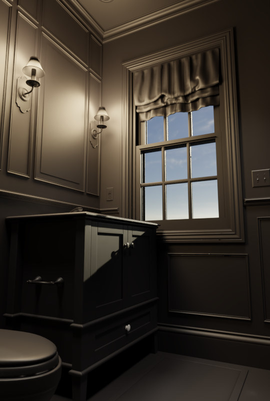 Anyway I think it is interesting to see the bathroom scene without materials, it also teaches how only the lights operate