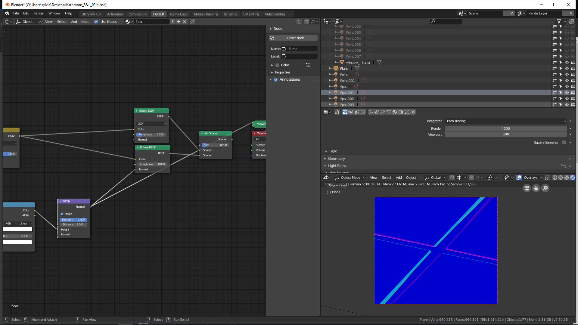 ssmurfmier1985 do you have any idea how I could get rig of the last noise (at left of lavabo and toilet and under lavabo. ) should I increase samples or try something else. Denise is on and I rendered with 6000 samples