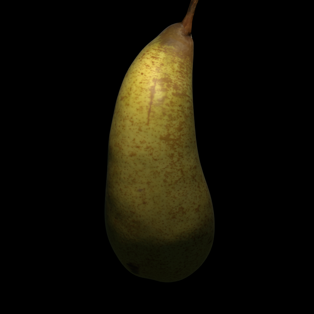 williamatics The more I look at your pear the more I think: "That's a really good pear." The texture is spot on! As for matching the source image, I think yours really needs a similar defocused background. The black background is an immediate disconnect. It would likely also provide a good reflection source for subtle fresnel reflectivity. Overall it's a pretty simple light match too..as in it looks like one or two lights, no background. I give it a C+