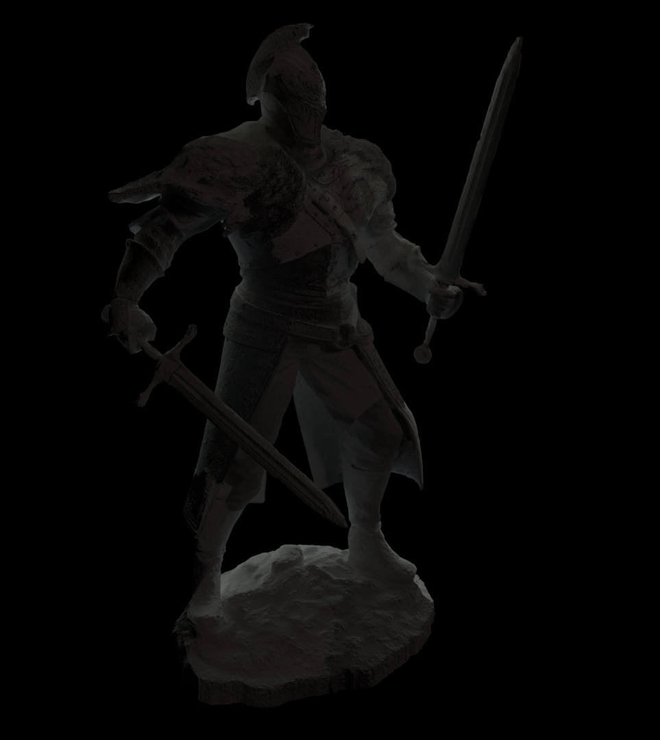 Here's my first attempt at the character lighting. The model is "Warrior Toy" by 3dhdscan. It can be downloaded (Insert link function goes off the page) on Sketchfab. Right now, I am rather dissatisfied, especially by the rim light. I don't know where to place it. My goal is to give it dramatic, exotic lighting. Even though it is called "Warrior Toy", I would like to treat it as a real man when I light and render it.