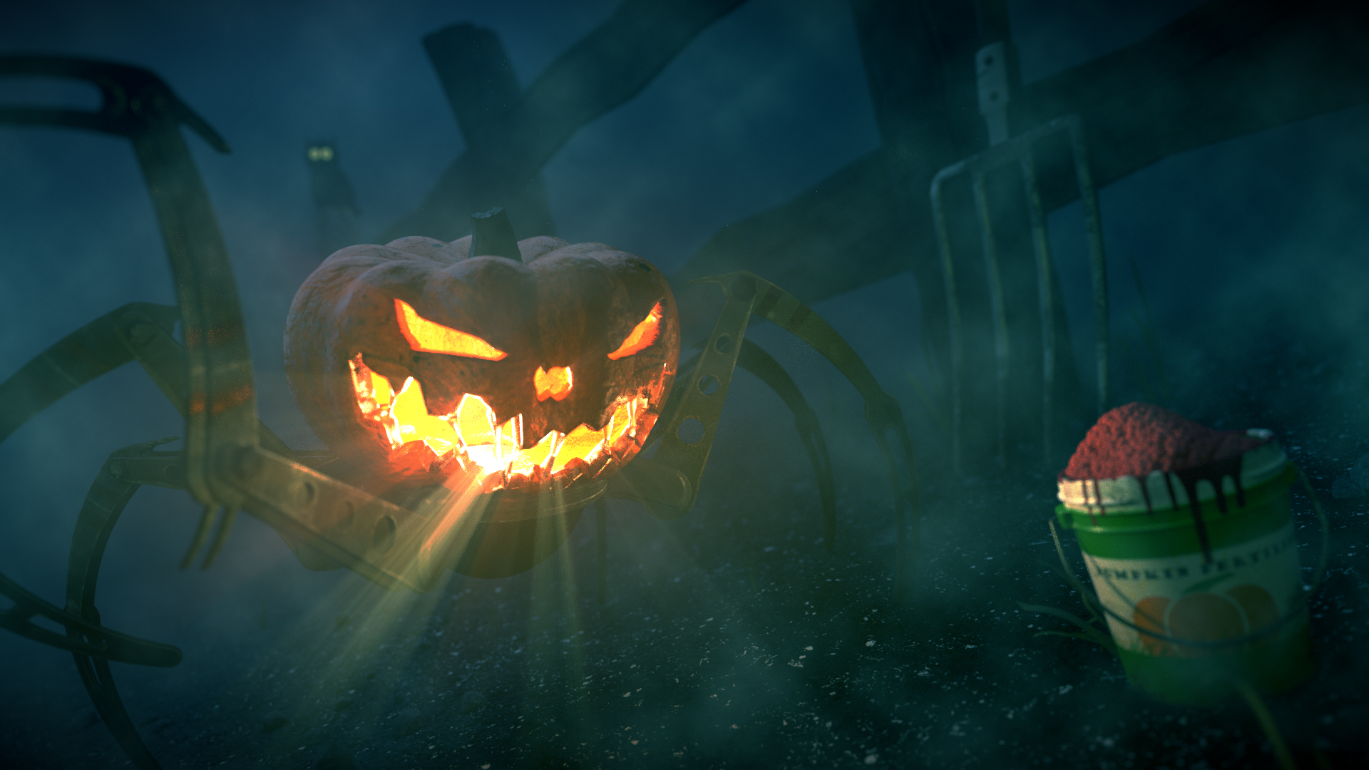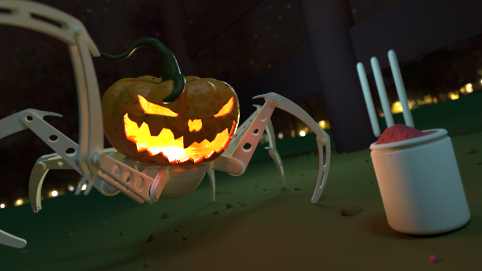 I'd like maybe to add some atmospheric lighting going from the mouth of the pumpkin, maybe during the post processing phase ?