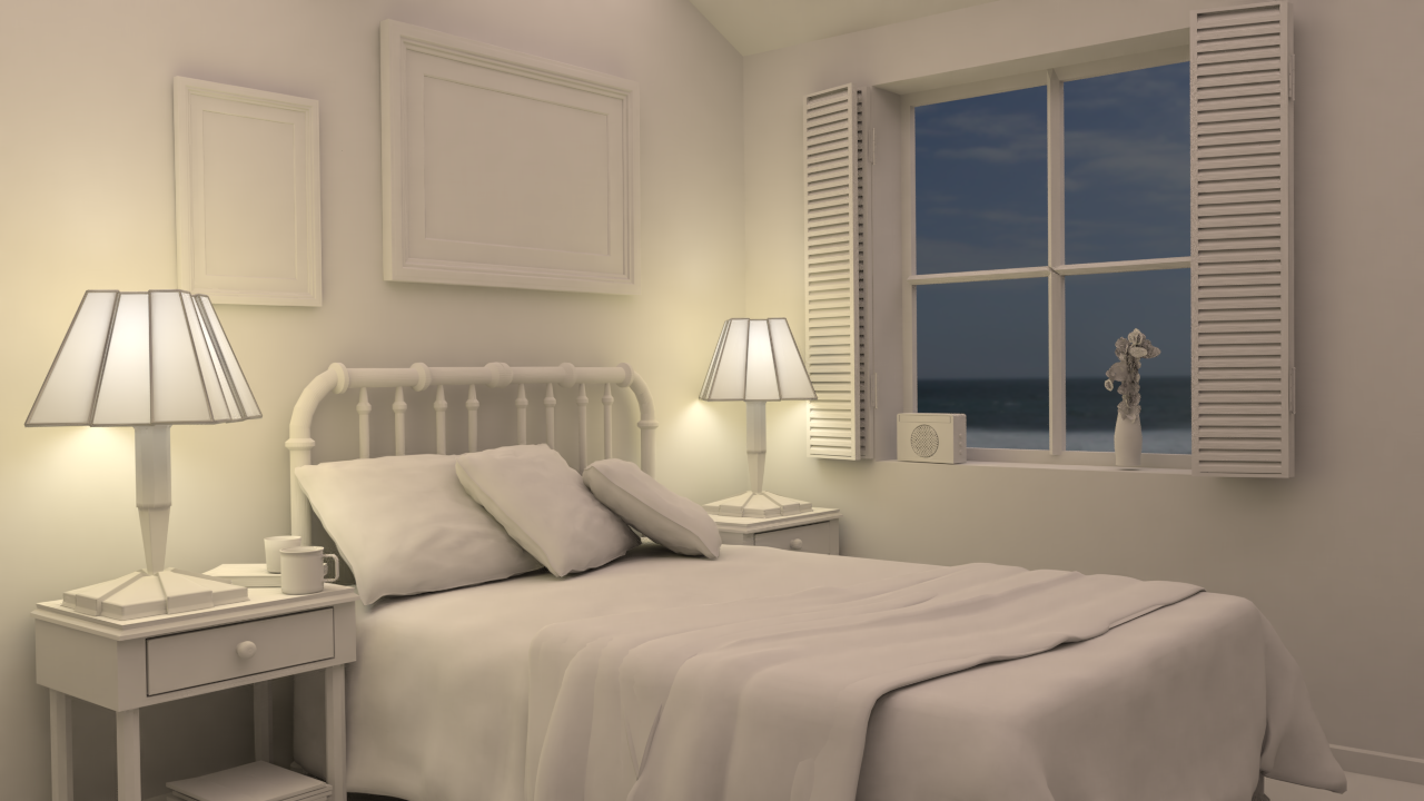 I agree with silent that the night scene looks good just a little too bright. The lamps would have to be super intense to light the room that way.