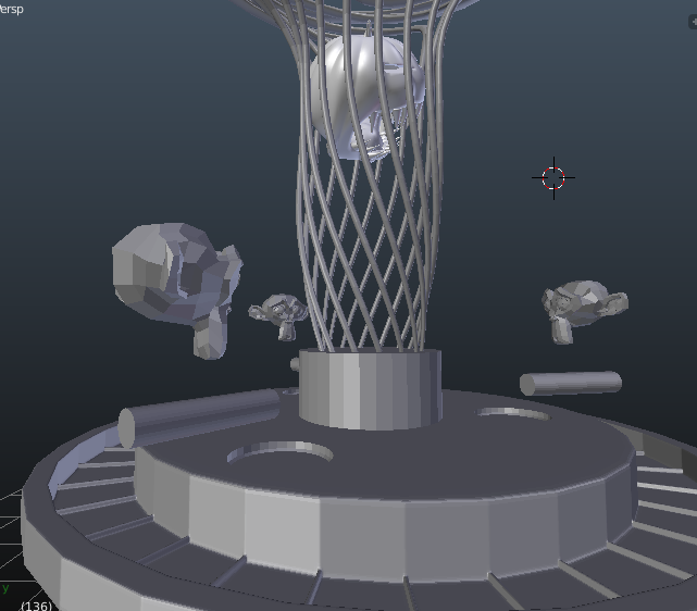 The monkey heads just show there will be people there. They will have cloaks on. The cylinder is there to show that their arm will be out. I'm not sure if I should have them all have blood dripping or not.