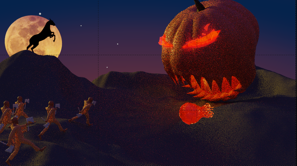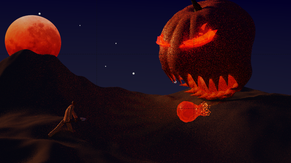 @cgcookiedough How bizarre... are there any more light sources aside from the pumpkin and the moon? 'Cause certain light issues (being too small, too bright in a condensed area etc) can also cause this even with high samples.
