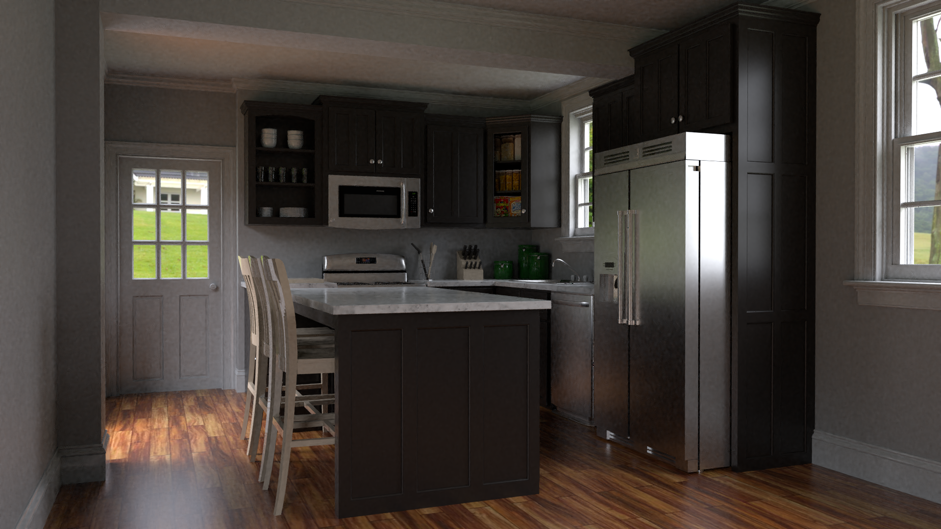 For Night: I used a  low power mid-blue area light outside the window to simulate a moonlight effect.  There is also a similar area light inside the room near where the camera is located.  The two lamps are light orange point lights inside the lamps.  I initially created the lights in the center of the lamp, which did not look right, then realized that the lights were inside the stem of the lamp.  Once I moved them forward I was able to achieve the lamp like effect.