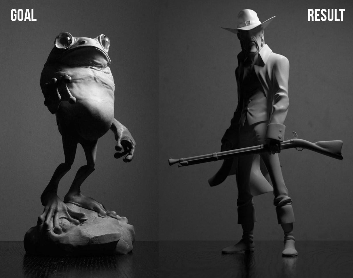 As for week 3, you crushed the character render. I like the values of light and shadow, the colors are subtle and work great for a model-centric render, and the rim light is *poppin*. An easy A on that one.